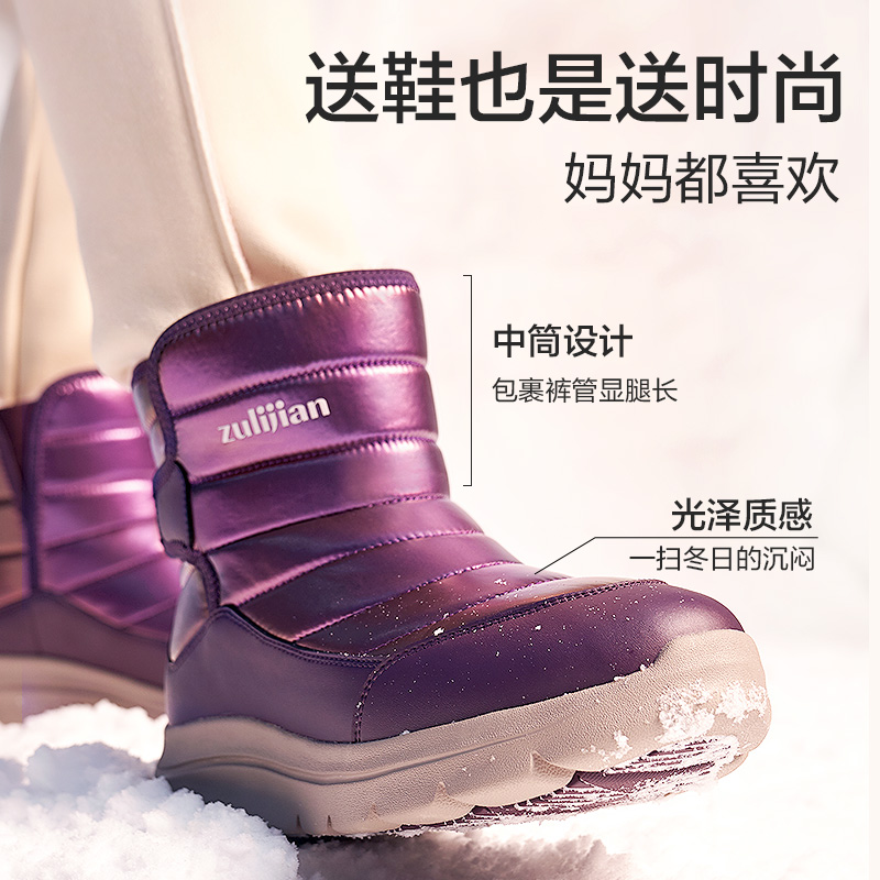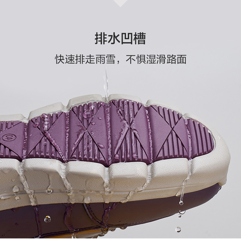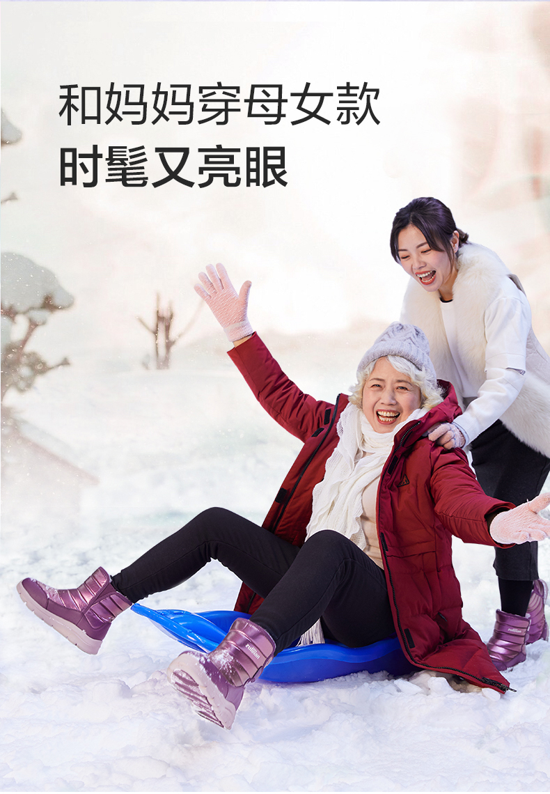这款 雪地靴,是今年热销款,采用防风防水羽绒布作为鞋面,光泽亮面充满质感,一擦即净好打理,内里约2cm细密厚实羊毛+皮毛一体鞋垫,全方位包裹,舒适又暖和。中筒设计魔术贴+松紧带相结合,穿脱方便,可包裹裤管,修饰身形显腿长、热量不流失,穿着更温暖,橡胶大底结合菱形花纹与排水槽设计,不惧湿滑路面,行走更安全。