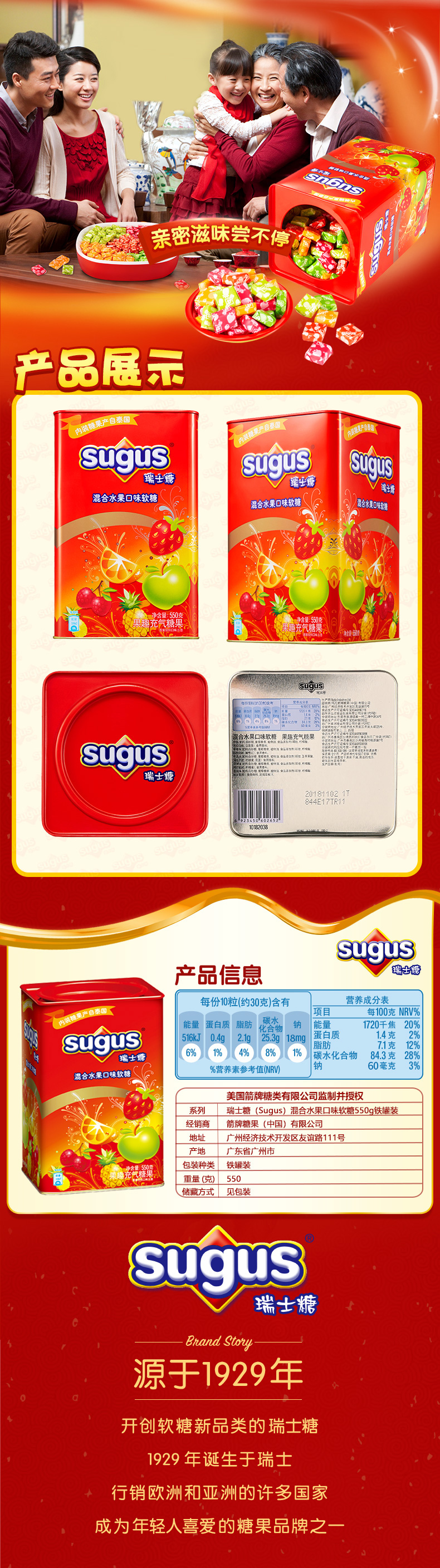 天猫wrigley箭牌旗舰店79.9元,可领17元优惠券,实付62.9元到手,新年礼盒装,小朋友超喜欢,瑞士糖水果味。4.9分好评。这款sugus 瑞士糖 混合水果味 礼盒装,规格: 550g,缤纷水果,酸甜可口,经典口味百吃不腻,礼罐装,送人自己吃都很不错,幸福时刻。