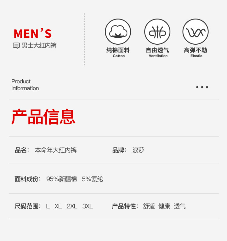 天猫浪莎官方旗舰店49元,可领10元优惠券,实付39元到手,是正价98元的4折;本命年大红内裤,柔软亲肤,舒适不紧绷,穿上它,鸿运连绵好运一整年!领券链接点此