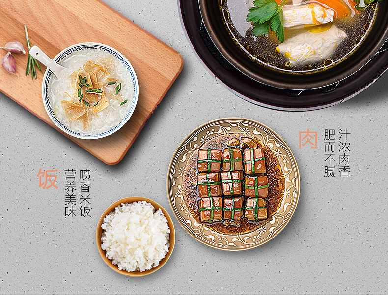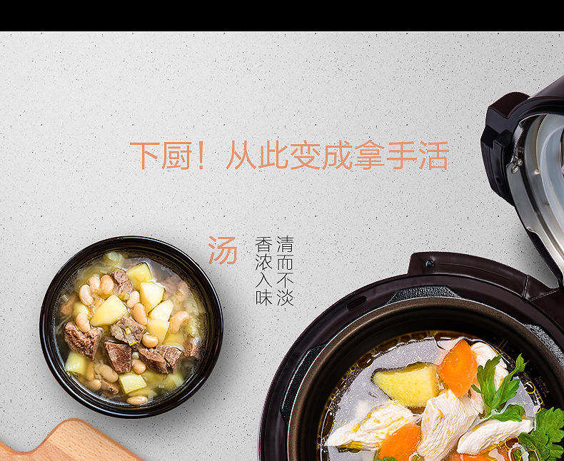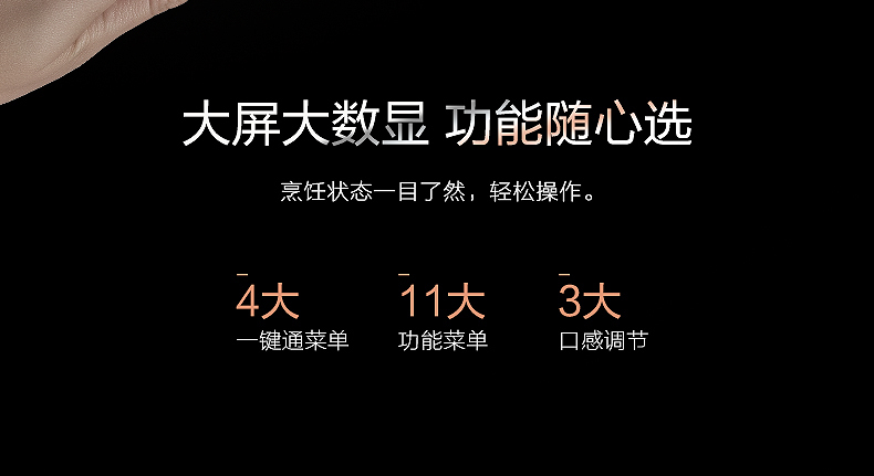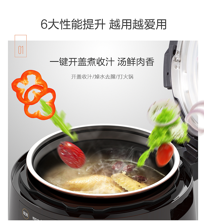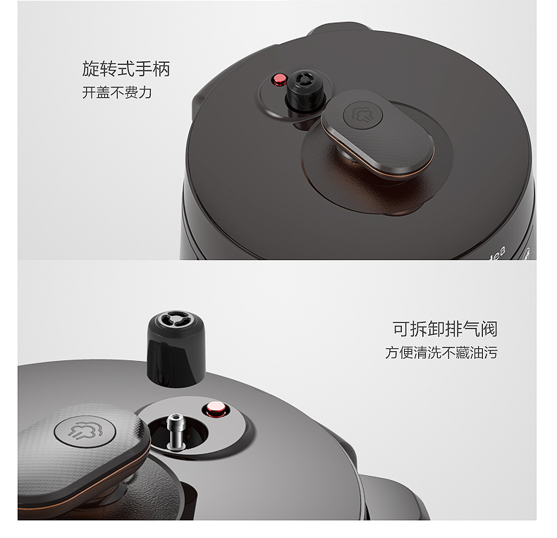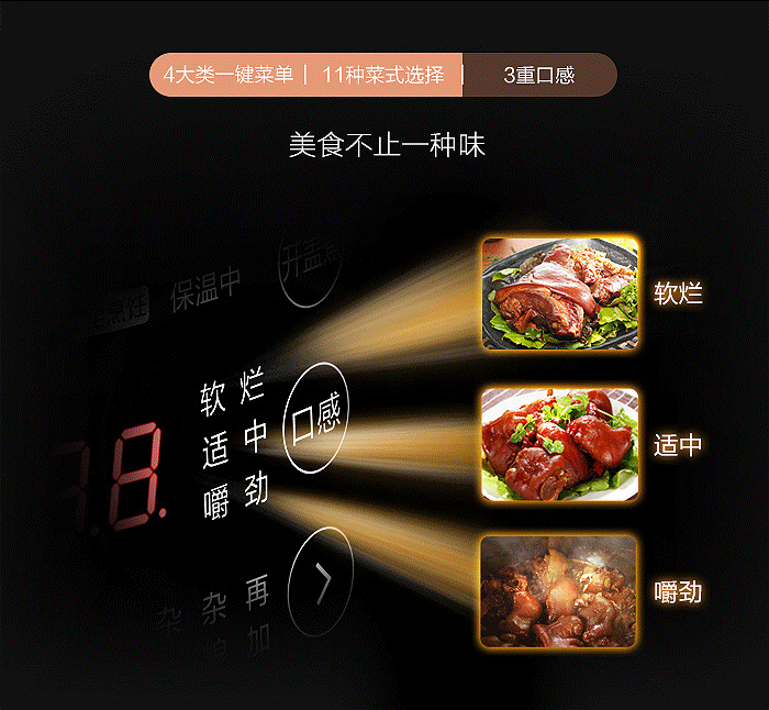拥有4大类一键菜单,11大功能菜单,支持3种口感选择,下厨从此变的简单,爱上做饭,并且支持24小时预约,提前预约下班到家就可以吃上香喷喷的饭菜,简单方便。一键手动排气,防烫手。上盖可立可拆,易清洗,隐藏式提手,美观易提拿。安全也是很重要的,三重智能防护,保护家人安全。如有需要可以关注一下哦~