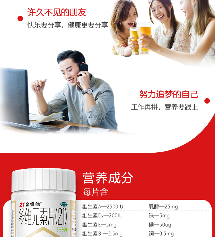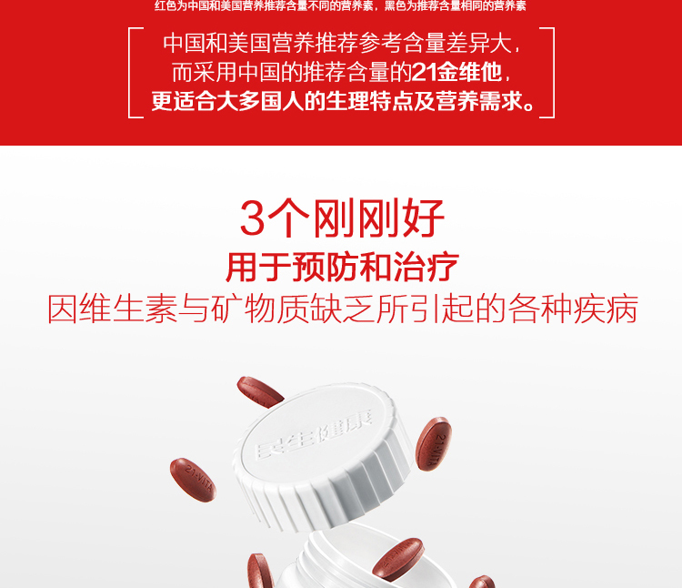 根据国人体质精确配比的21种维生素和矿物质,有3层包衣有效抗氧化,促吸收,用于预防和治疗因维生素与矿物质缺乏所引起的各种疾病。