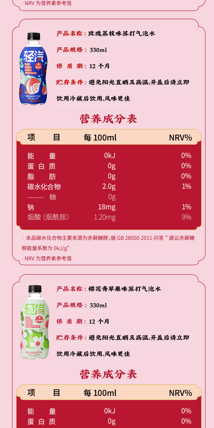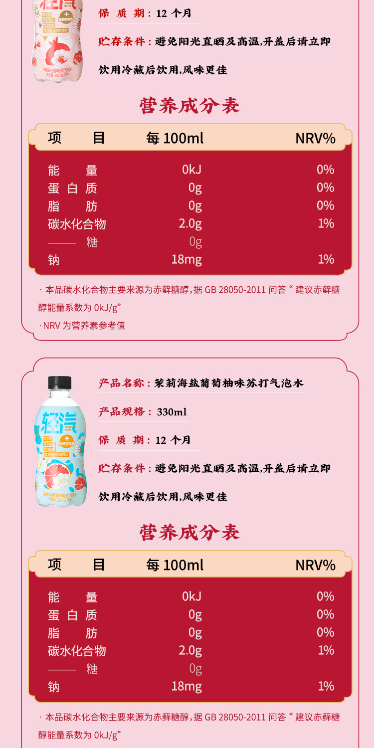 0糖0脂0卡,采用天然代糖「赤藓糖醇」不引起血糖变化,不引起龋齿,鲜明强烈的气泡,爽快感混合清纯的水果味道,曼妙爽口,散发着宜人橘气,冰镇一下,口感更畅爽~领券链接点此