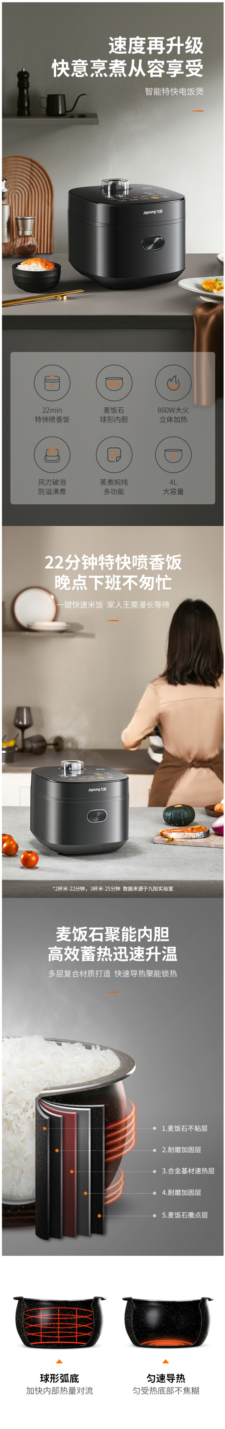 860W立体加热,搭配内置涡轮风刃破泡蒸汽阀,迅速破泡防溢,保证米粒充分吸收能量,能拆卸清洗。