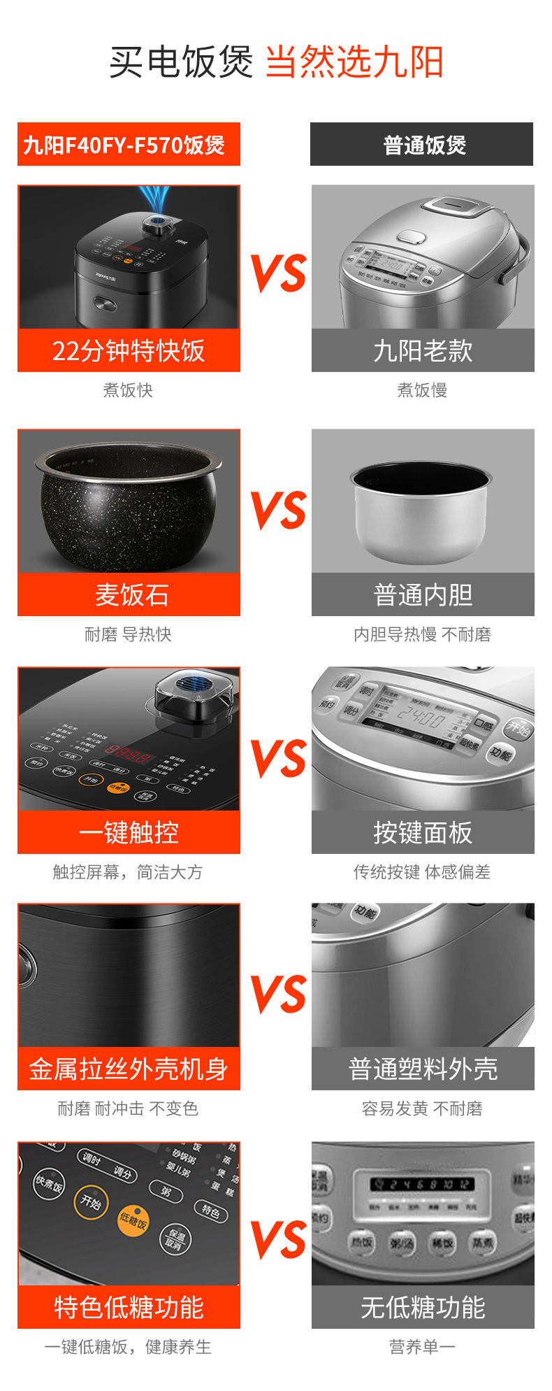 天猫九阳中卓鼎专卖店399.9元,下单立减50元,可领80元优惠券,实付269.9元到手,这款F40FY-F570智能低糖全自动电饭煲,22min特快煮饭,容量是4L,一家3~5口人用完全可以。
