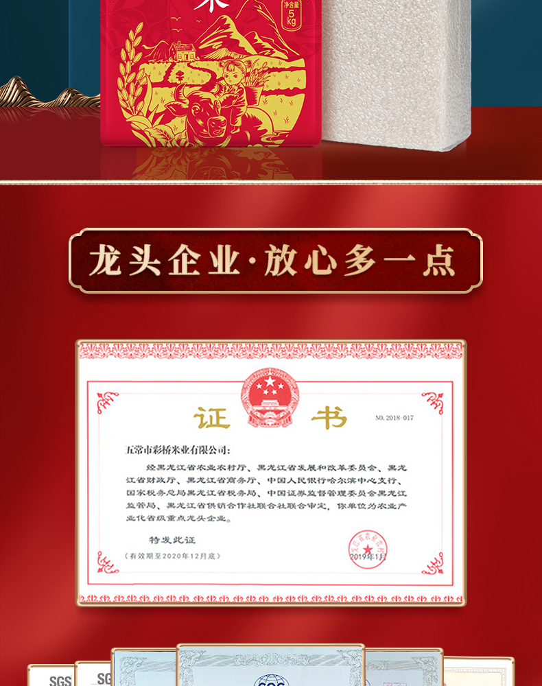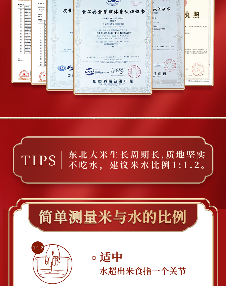 一般来说看五常大米是否正宗主要看执行标准,此款执行的是GB/T19266五常大米国家标准;但执行这个标准的米还是比较宽泛,比如地块米种纯度等,这时候就要看其他的各种认证了。