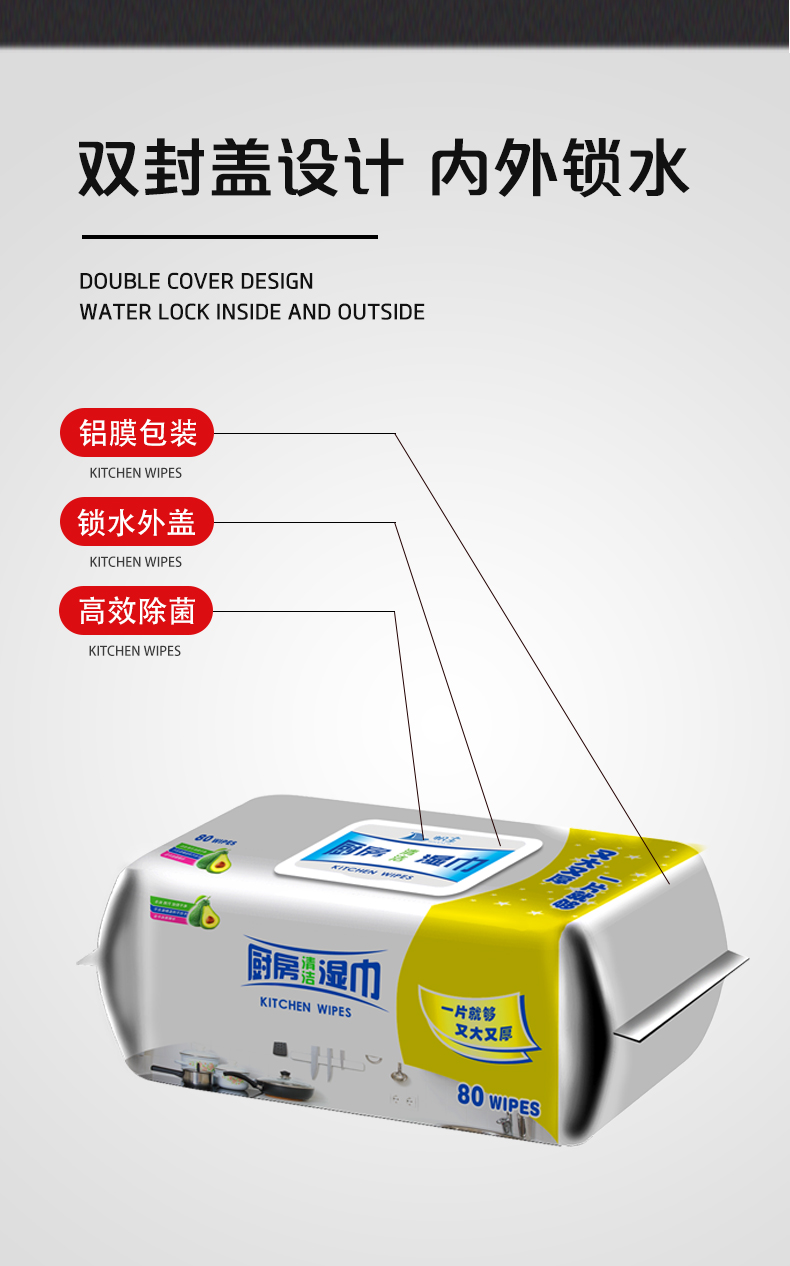 这款帆王厨房专用强力清洁湿巾,拥有立体珍珠压纹能增强吸附力,轻松带走顽固油污,同时坚韧不易破损,包装上也是缩水外盖+铝膜包装,缩水保湿。