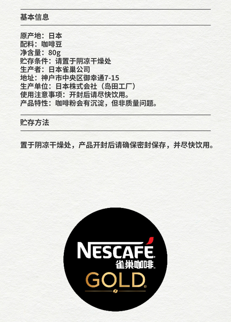 这款雀巢金牌黑咖啡,由日本原装进口,雀巢旗舰店发售,100%海外原装正品,盲测口感与现磨咖啡十分相近,不管是味道还是提神力都远超袋装速溶,而且不含植脂末和糖,非常健康。