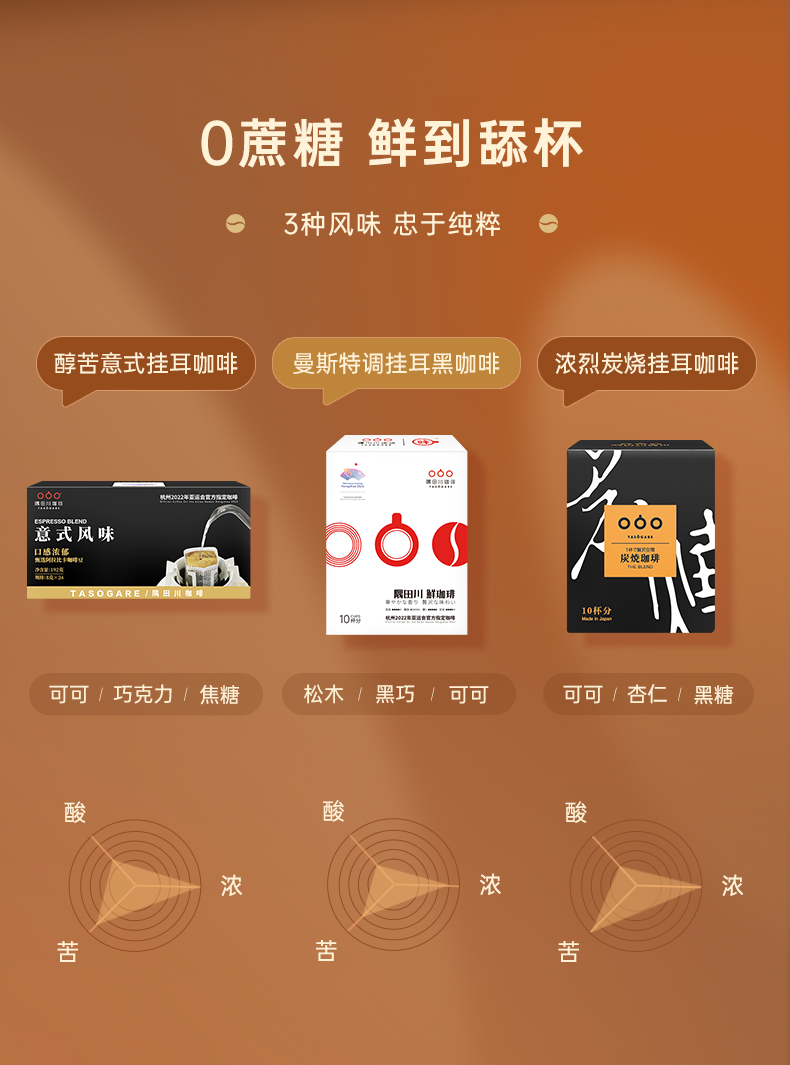 这款隅田川 滤挂式挂耳黑咖啡,是日本原装进口,无蔗糖,无树脂末,拥有意式、曼特宁两种经典风味。选用阿拉比卡原生咖啡种,品质上乘,不含任何添加剂,纯咖啡豆研磨,使用氮气保鲜保香;日本先进无菌滤袋,撕拉方便,注水不疲劳;防挤压加固内盒,加厚环保包装。