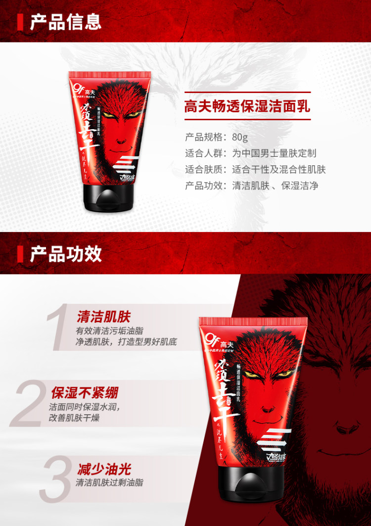 高夫畅透保湿洁面乳,大圣归来定制款 80g+50g,多效清洁,深层净化;天猫高夫官方旗舰店的质量也有保障,高夫这个价真心不错了。