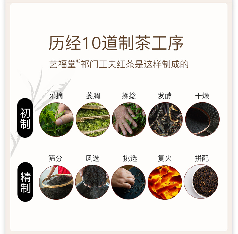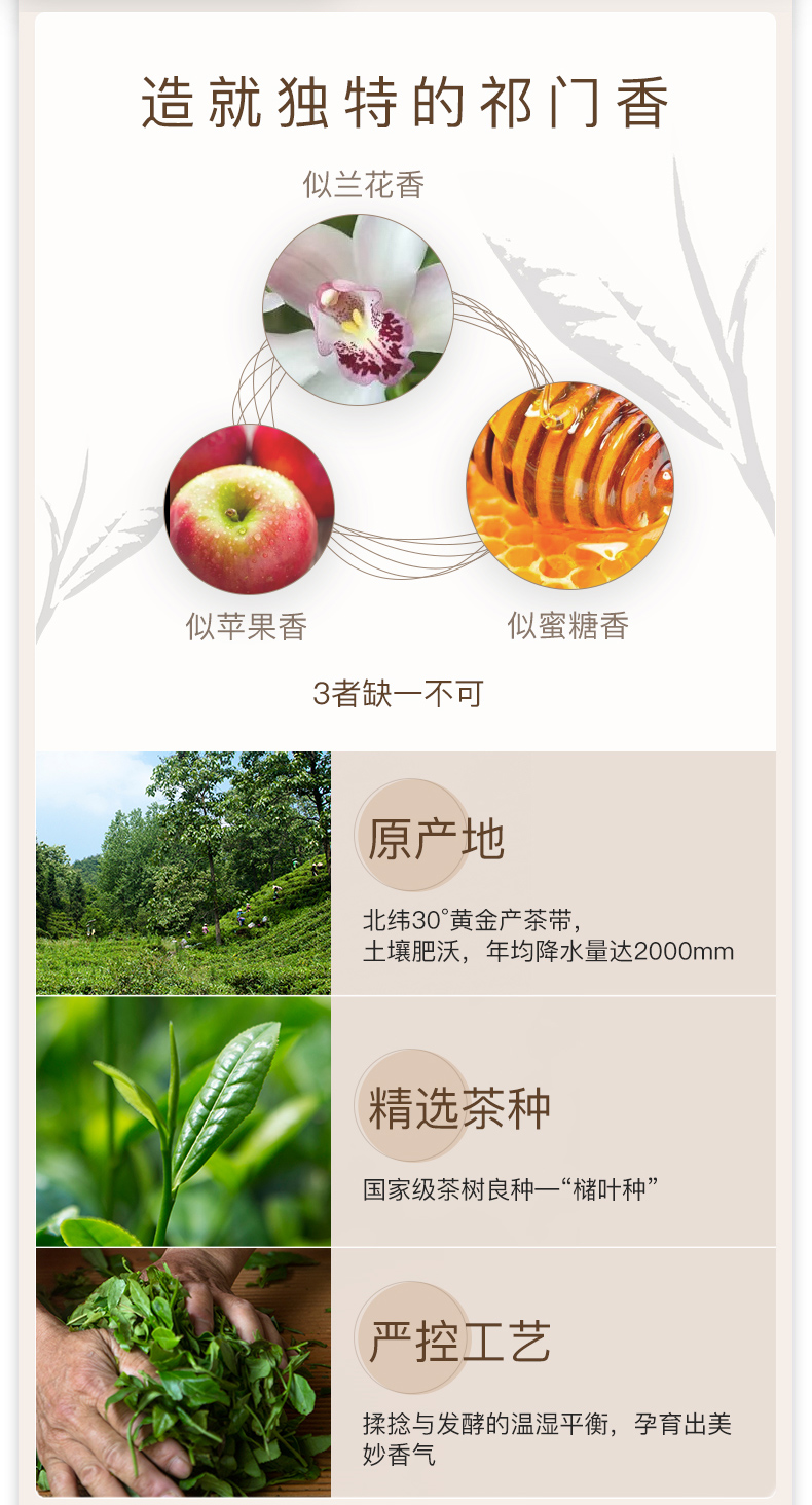 艺福堂 是功夫红茶国家标准参与制定者,这款祁门红茶荣获了19年度世界红茶产品质量推荐金奖,优选祁门黄金产地,国家级茶树良种“槠叶种”(又名祁门种)制作,历经10道制茶工序精心制成,造就独特祁门香,似兰花香、似苹果香、似蜜糖香,干茶条索紧细,锋苗显露,茶汤红艳明亮、金圈显露,叶底细嫩红均,饱满鲜亮。