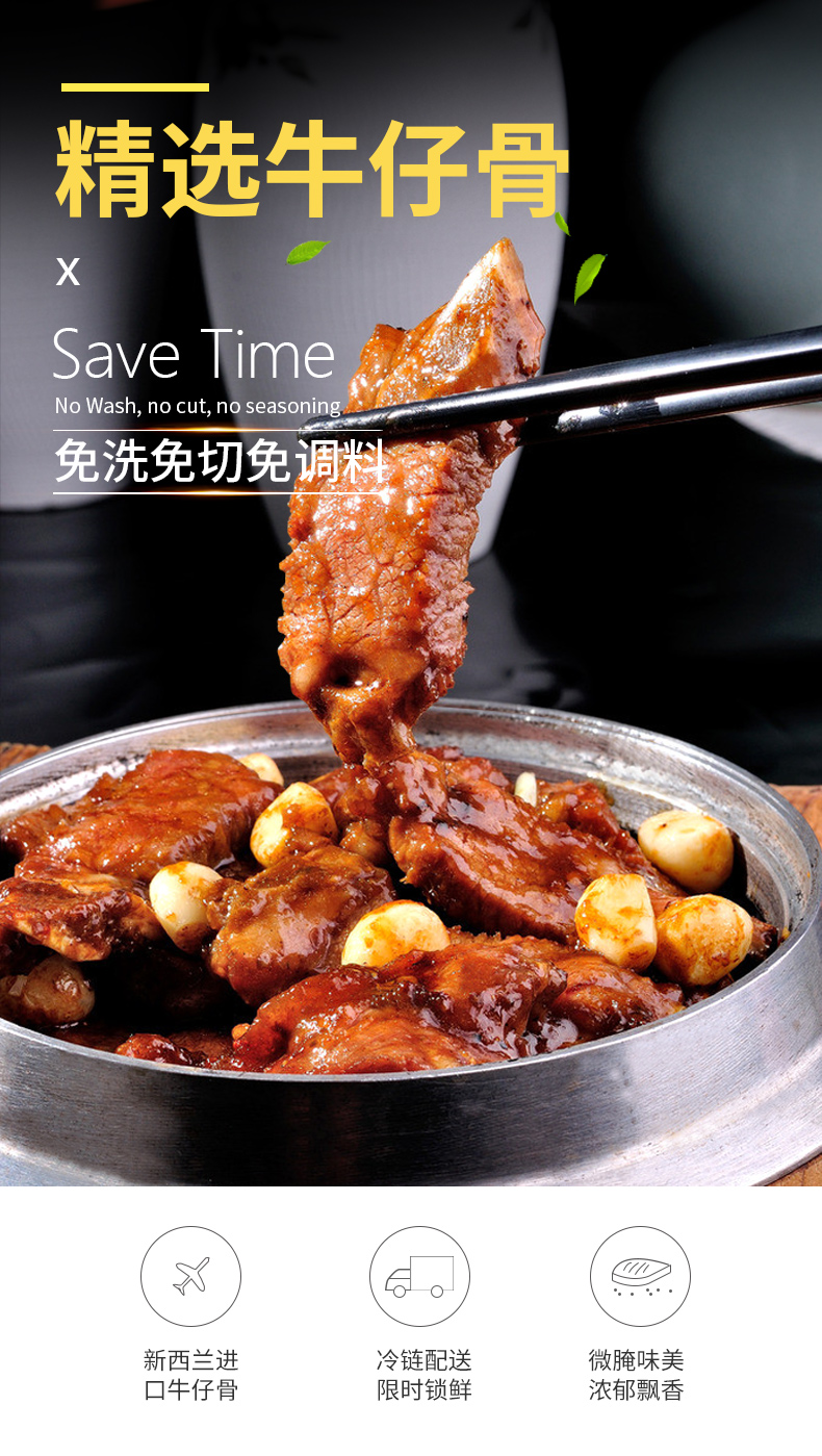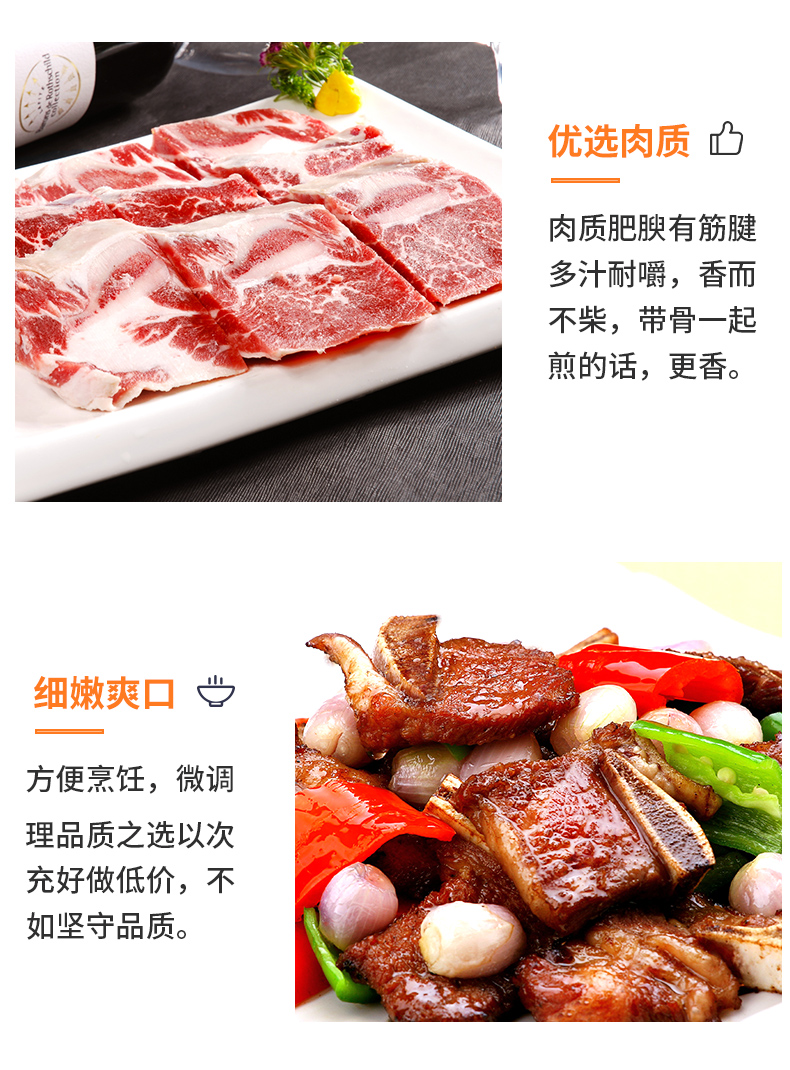 已做过核酸抽检的牛肉,品质保障。选用新西兰进口草饲黄牛,整块牛仔骨,肉质雪花纹理清洗,脂肪含量充足而又不肥腻。