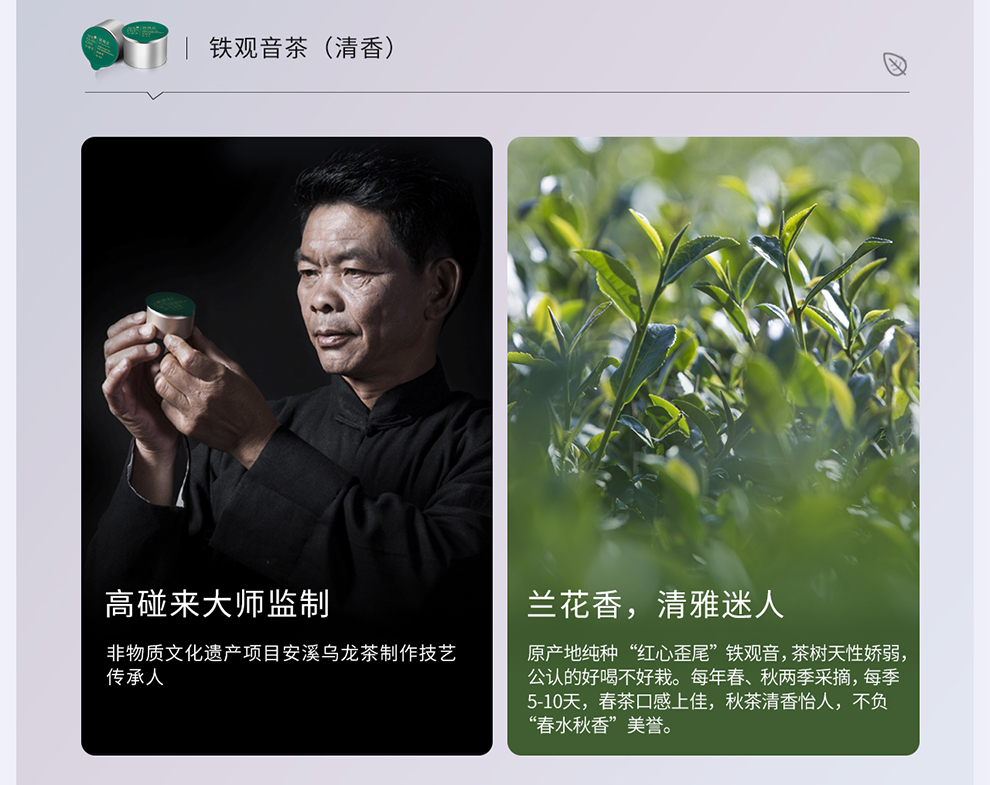 小罐茶的茶叶均来自于产地严选,由国家级非物质文化遗产的技艺传承人监制,铝罐覆膜,充氮保鲜,使茶叶随意保存就能不吸味、不受潮、不氧化、不破碎,研发团队用现代科学的方法,让好品质从经验到科学,标准化生产。