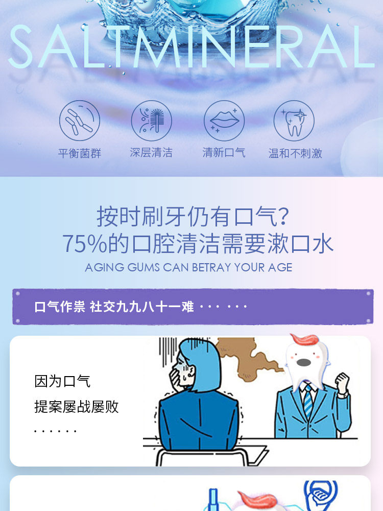 广东医科大学共同研发,品质保障,0酒精温和不刺激,清爽深海盐西瓜味儿,预防牙菌斑,健康亮白,清新口气,展现自信笑容,再靠近也不怕领券链接点此
