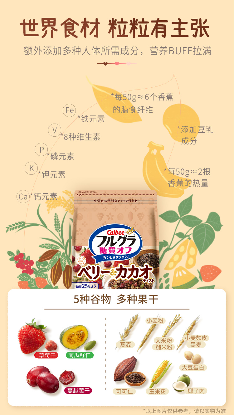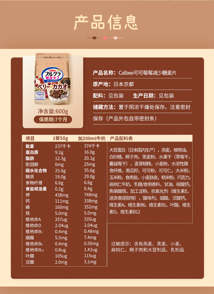 卡乐比的水果麦片非常好吃,口味丰富,可直接开袋干吃,一般作为早午餐泡牛奶、豆浆吃,泡在酸奶里也非常美味。这款麦片生产于日本北海道,非辐射污染区,同时许多原料还是进口的,安全上不用担心,国际官方旗舰店,来源渠道也有保障,可以放心食用。