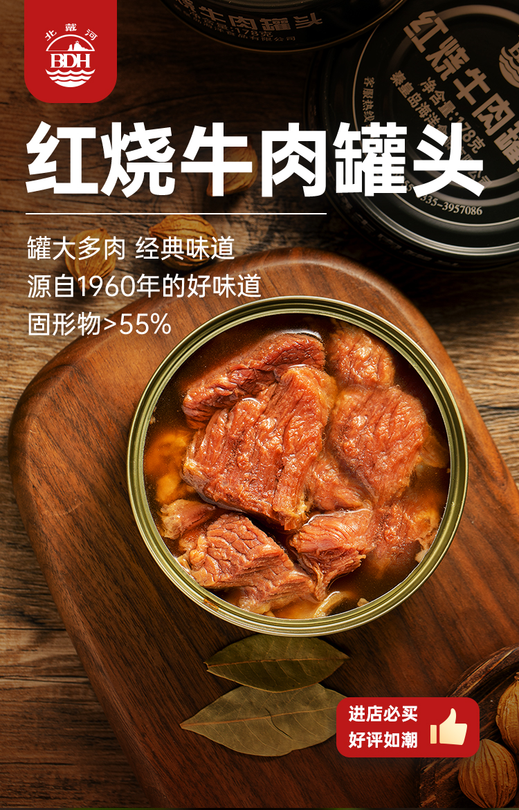 北戴河是原中国人民解放军第四〇〇三工厂,60年的军品制作经验,产品量大实在,货真价实,之前最火的红烧肉罐头,源头就是北戴河,可以直接拌米饭,也可以整点土豆一起炖炖。