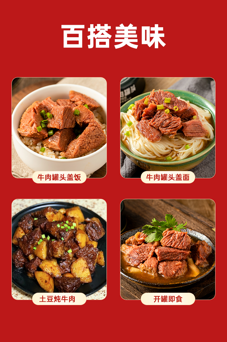 这款牛肉罐头精选优质牛肉,新鲜宰杀,在原料上锁住肉的新鲜度。采用无菌罐装的方式封装,首先将罐盖与罐身通过封口机进行抽真空、密封,外界的空气就无法进入,然后将封好的罐头放入杀菌锅中,高温高压杀灭罐头内的绝大多数细菌,使罐头符合商业无菌,所以,即便是在常温的条件下也可以长时间的保存。