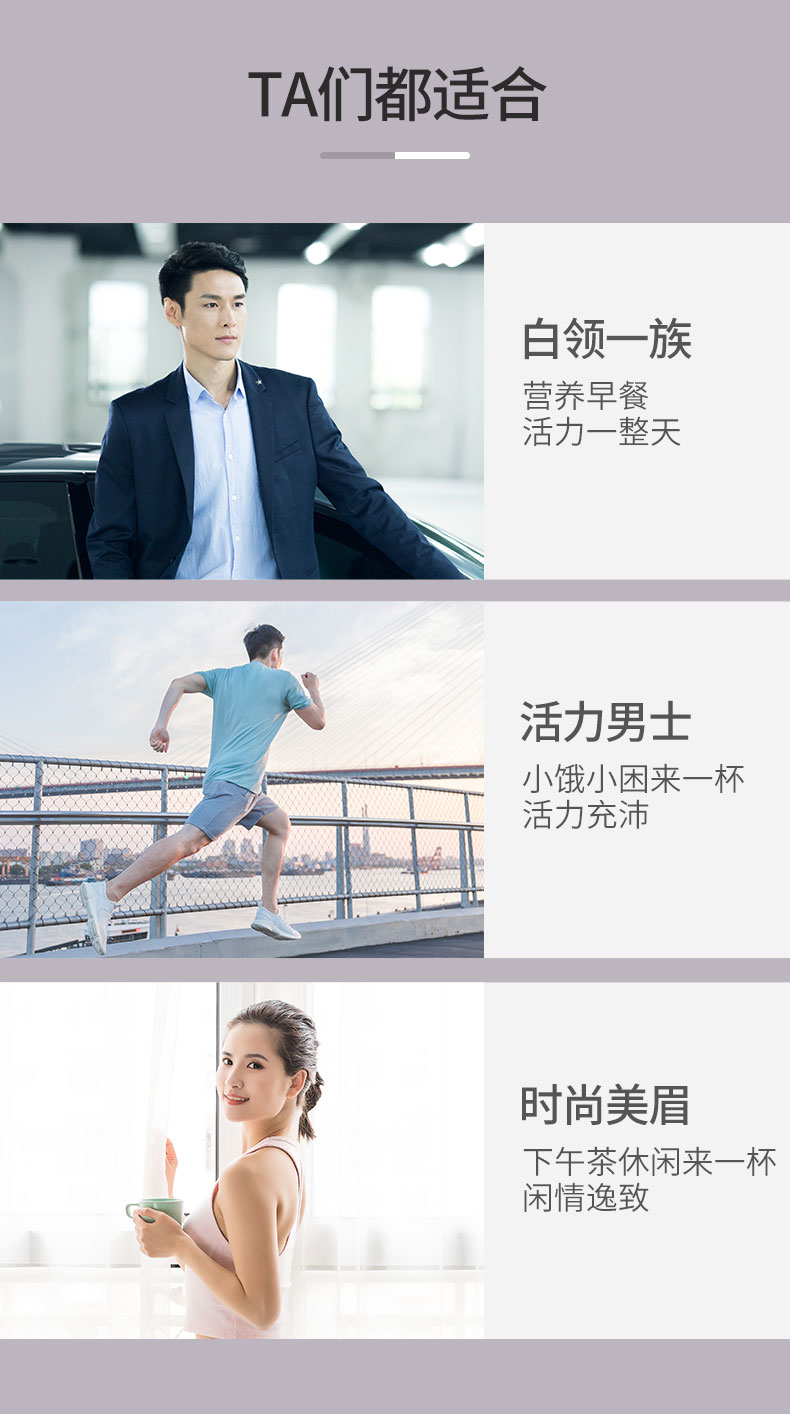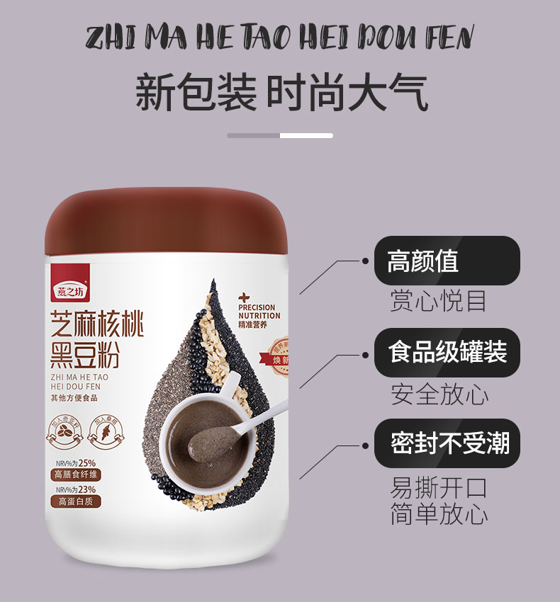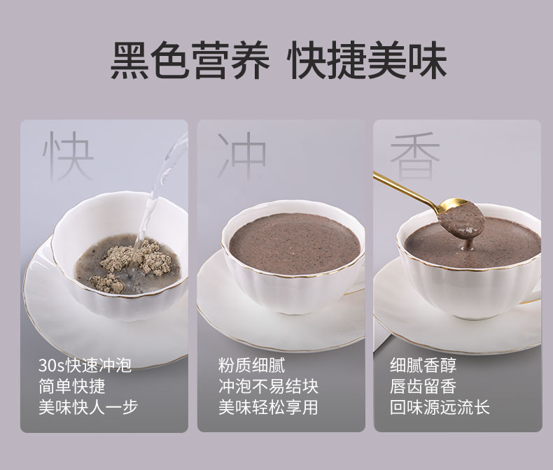 粉质细腻,细腻香醇,30秒快速冲泡,高纤高蛋白、无蔗糖低GI,营养健康,轻食代餐无负担,随时随地来一杯,唤醒新活力。
