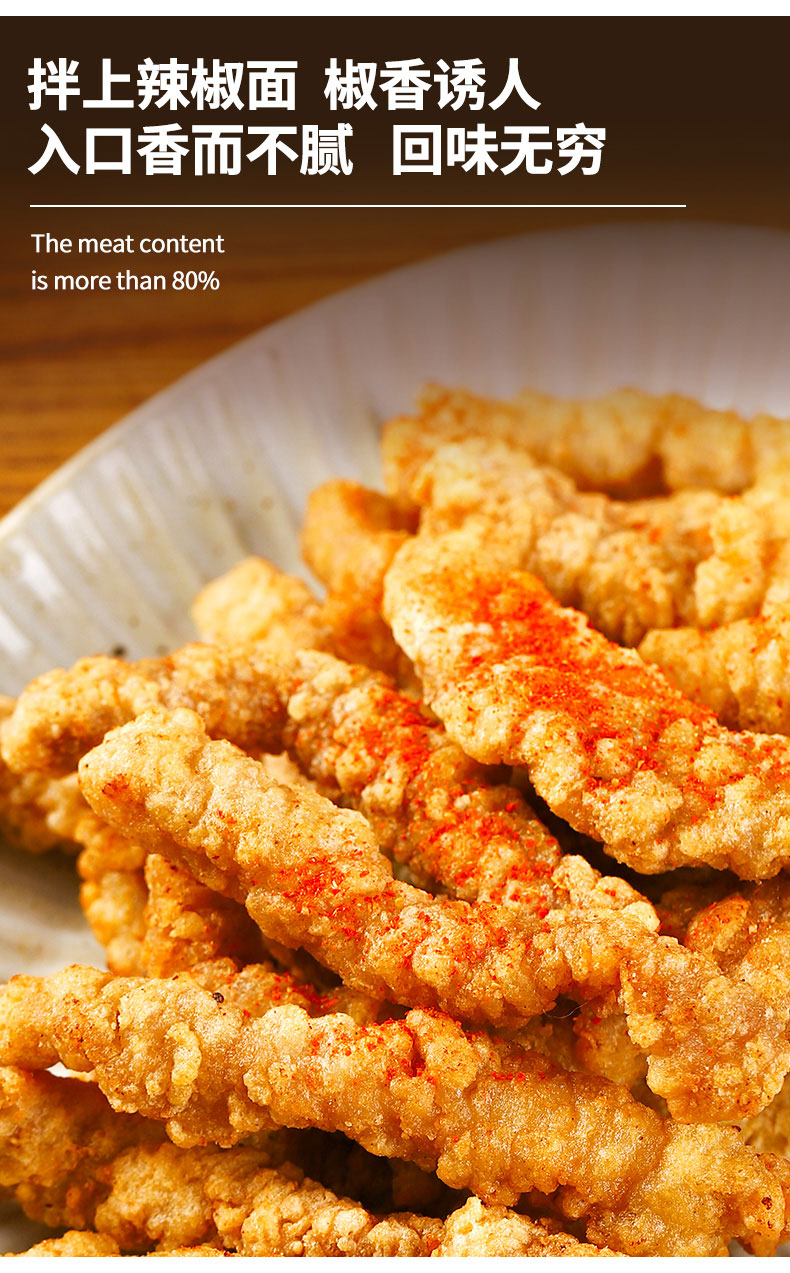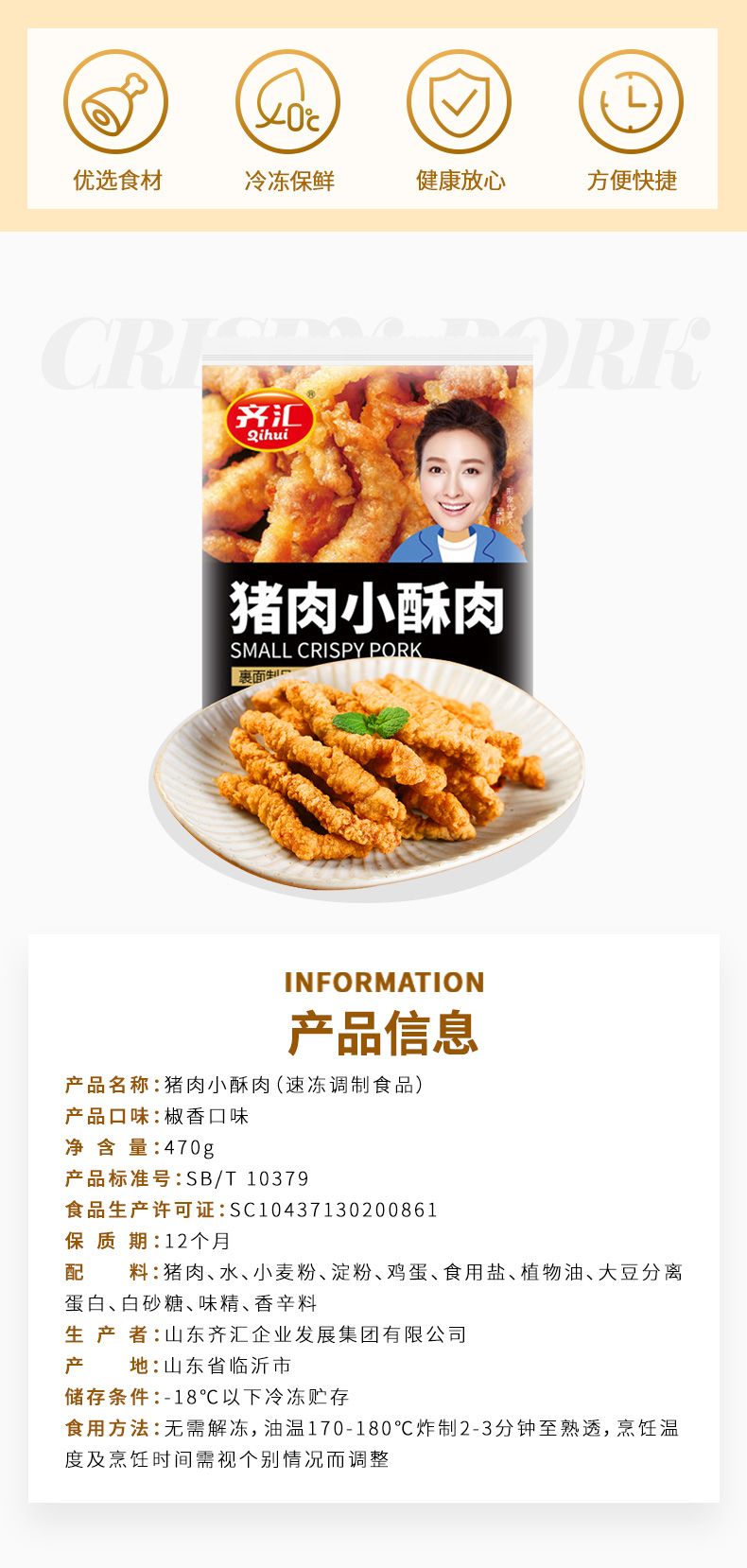 吴昕代言,齐汇农家椒香加热即食大份小酥肉,椒盐酥香,根根分明,精选精选上等猪后腿肉切条,惊喜面粉包裹炸制金黄,外酥里内,口感真心妙不可言,大人孩子都爱吃!
