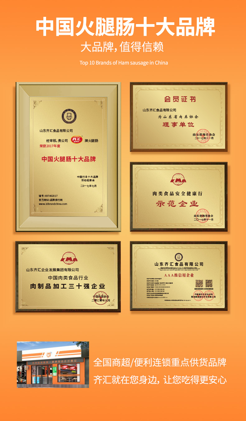 山东齐汇食品有限公司是家集研发、生产、营销为体的现代化肉类食材生产加工企业,是山东省肉类协会、中国肉类协会会员单位,2017年中国火腿肠十大品牌。