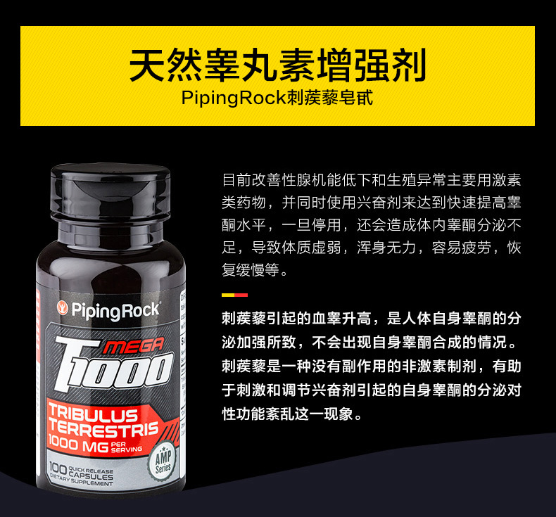 PipingRock刺蒺藜皂苷胶囊,采用天然植物萃取,可以提高血睾水平,能够增加肌肉力量,促进体力的恢复,还可以改善男性性功能,提升精子数量和活力,是一种理想的性功能调节剂,男性备孕的必备产品。促进睾丸酮的分泌,增加肌肉力量、耐力以及爆发力,也对运动后消除疲劳,回复元气有明显帮助。