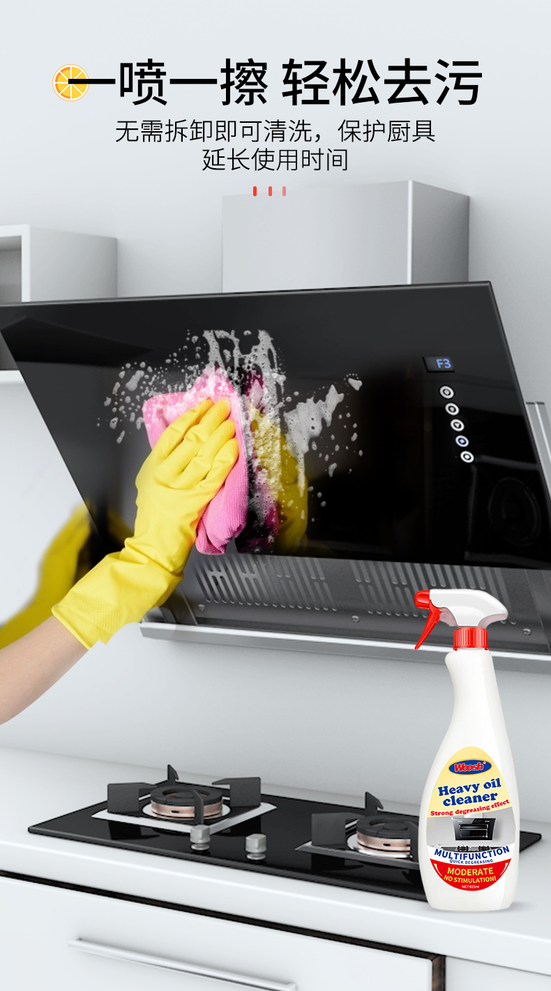 这款MISTOLIN油污清洁剂,产地欧洲,通过环保标准、健康管理标准认证,科学配方,气味温和,普通油污几秒钟即可分解,重油污1~2分钟即可分解;适用于各类油腻物体表面,清除各类污渍和碳化残留。适用于燃烧器、烤架、瓷砖,预浸锅碗瓢盆、炉灶、抽油烟机、烤箱、厨房台面。