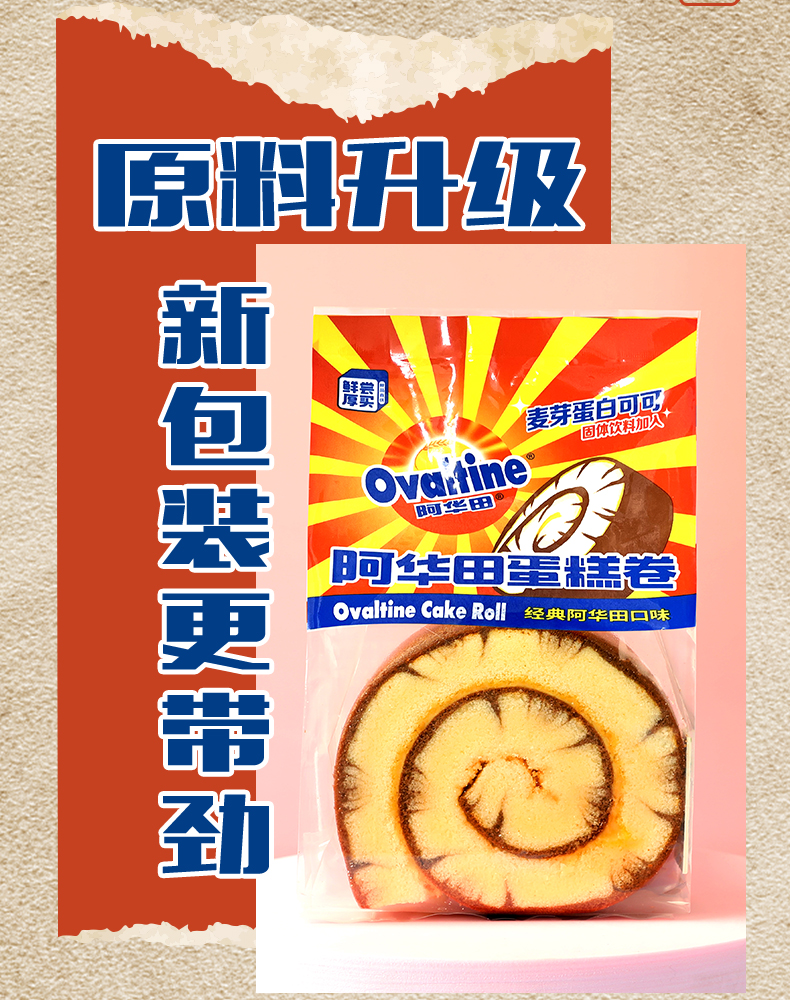 阿华田新品的蛋糕卷,精选优质小麦粉和新鲜土鸡蛋,搭配香醇乳粉和经典麦芽蛋白阿华田可可粉,新鲜制作,具有丝滑细腻的口感,单个便携独立包装,食用方便,很不错的小零食。
