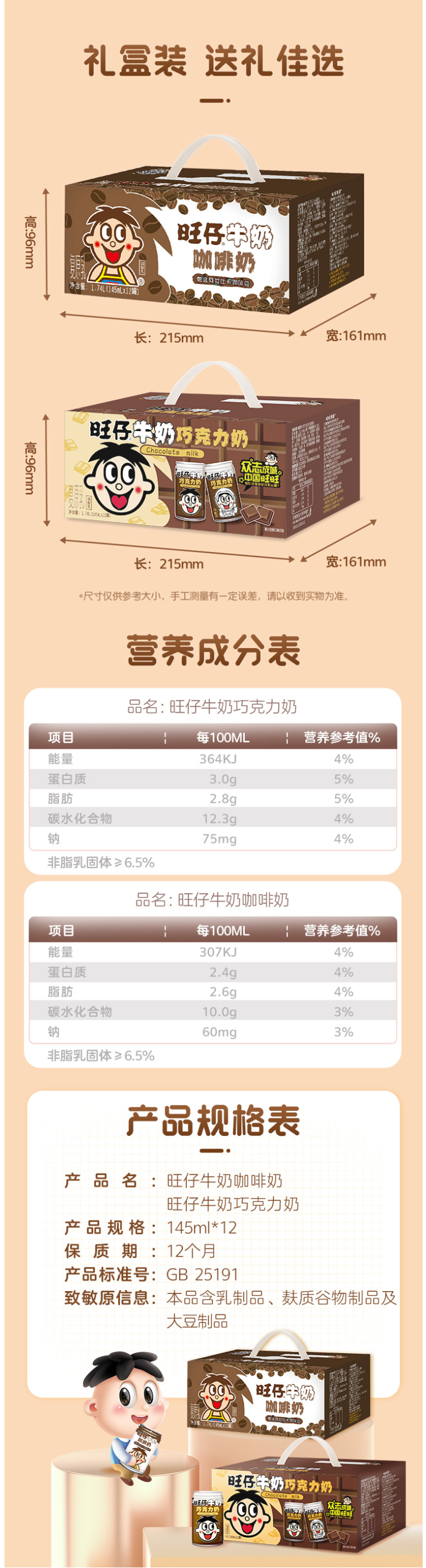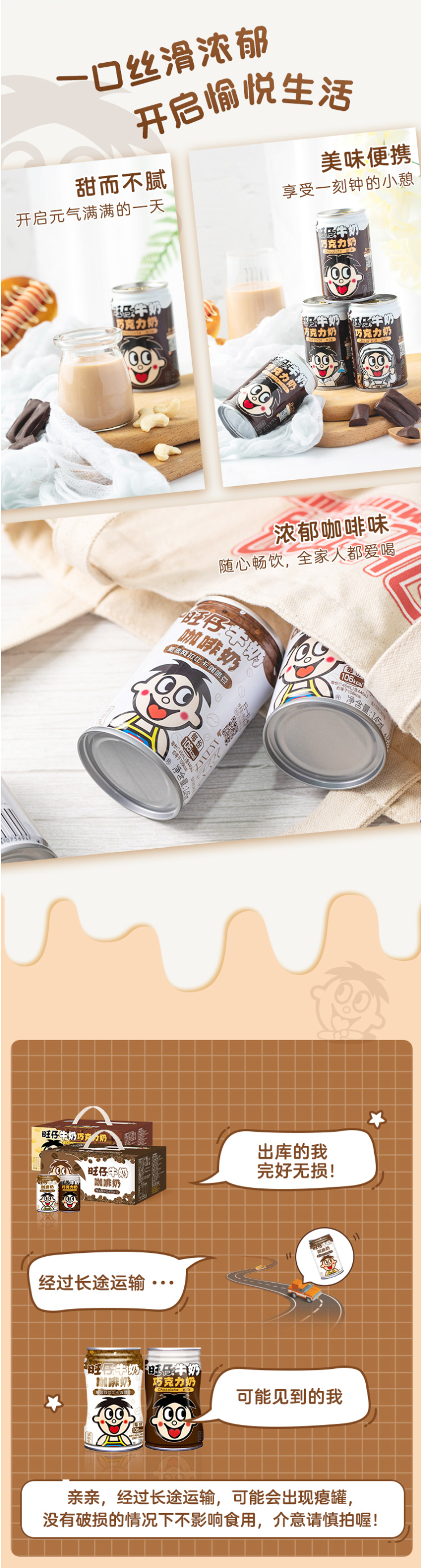 这款旺旺 旺仔牛奶巧克力奶,选用新西兰黄金带乳源的旺仔牛奶,搭配上浓郁可可粉,入口丝滑细腻,香甜醇厚,每100ml含3.0克蛋白质,好吃也有营养。