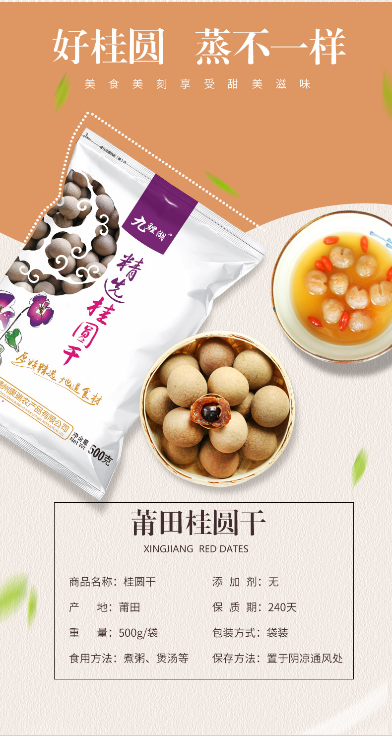 天猫九鲤湖旗舰店16.8元,可领2元优惠券,实付14.8元到手2袋,共2斤,是正价52元的2.8折;这款桂圆干经过63°蒸汽烘干而成,可以当做零食吃,也可以泡茶和煮粥用,肉质鲜润可口,壳薄易捏碎。规格:500g*2袋。