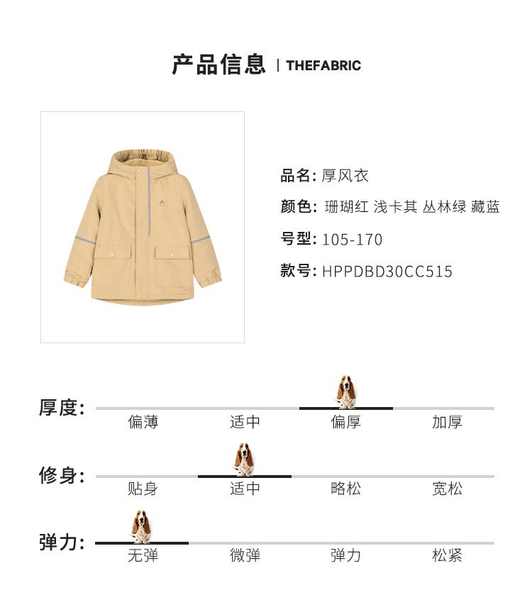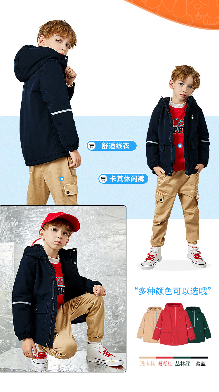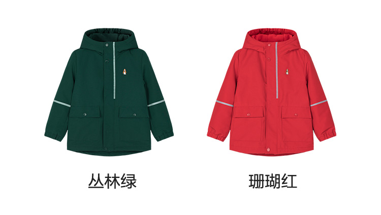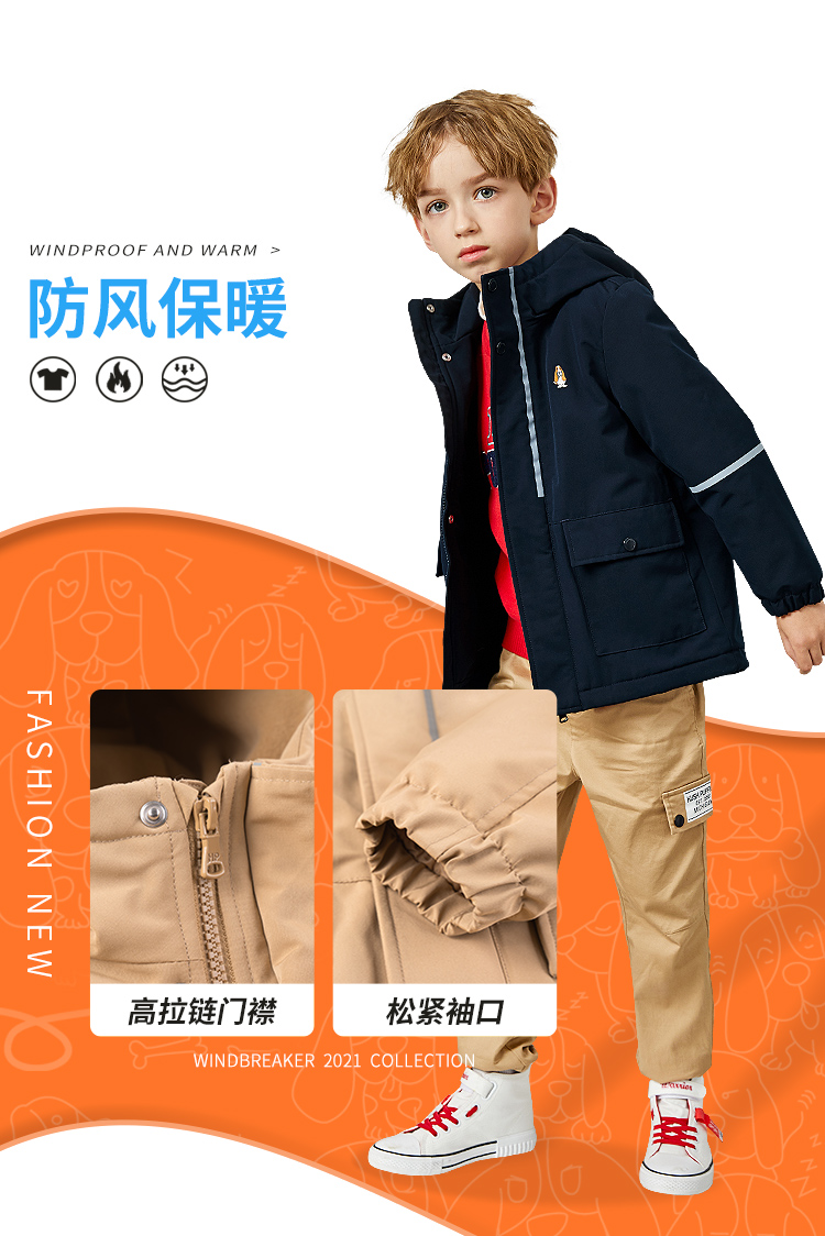 款式设计上,采用合体版型连帽设计,穿着舒适不束缚;双层门襟,增加了防风保暖性,门襟拉链带有护角,防止夹到宝宝娇嫩肌肤。经典斑点狗刺绣LOGO,彰显品牌魅力。