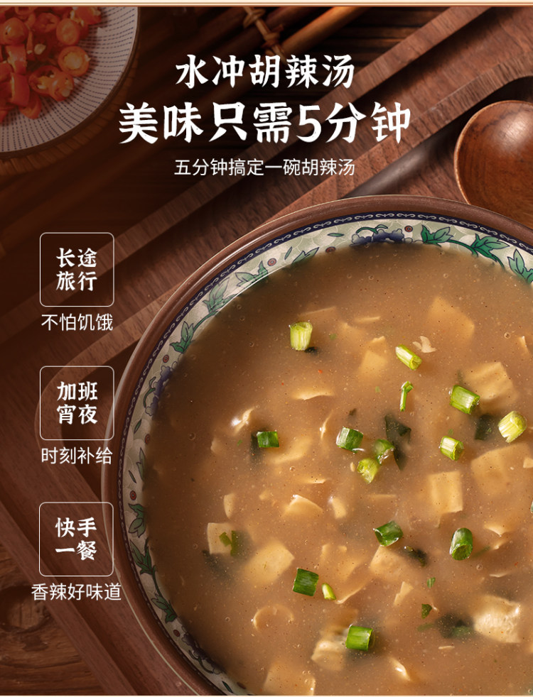 天猫胡三姐旗舰店19.9元,可领5元优惠券,实付14.9元到手,是正价60元的2.5折;5分钟开水冲泡早餐 汤味浓郁 酸辣可口。