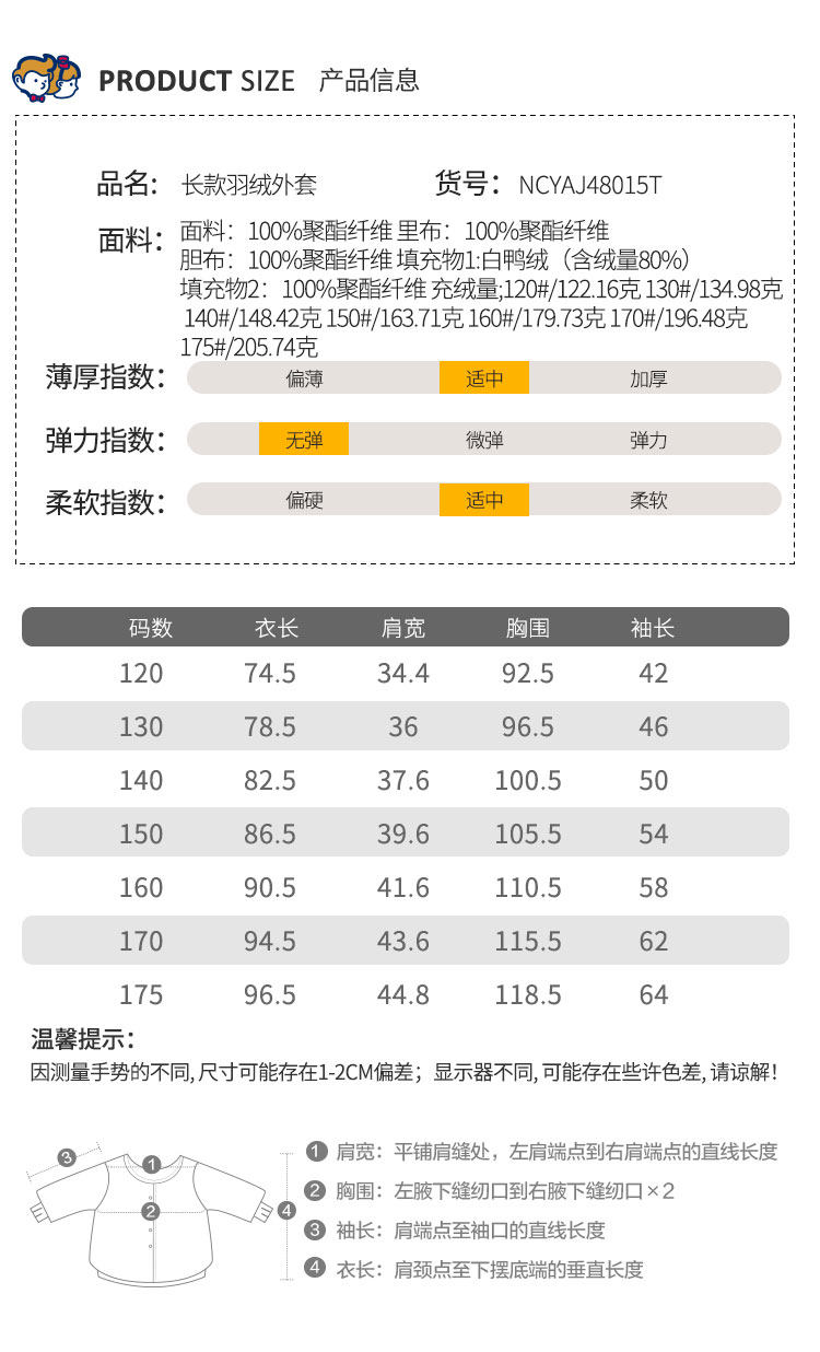 天猫男生女生旗舰店132元,可领65元优惠券,实付67元到手,是正价439元的1.5折;羽绒外套 带帽设计 舒适有型。这款Heylads 男生女生 男大童带帽羽绒外套,货号NCYAJ48007T,采用100%聚酯纤维面料,舒适有型,耐穿不易皱,内里填充80%白鸭绒,舒适保暖,连帽设计,带毛领,舒适防风,拉链门襟,斜插口袋,方便使用,罗纹松紧袖口,防止冷风灌入。
