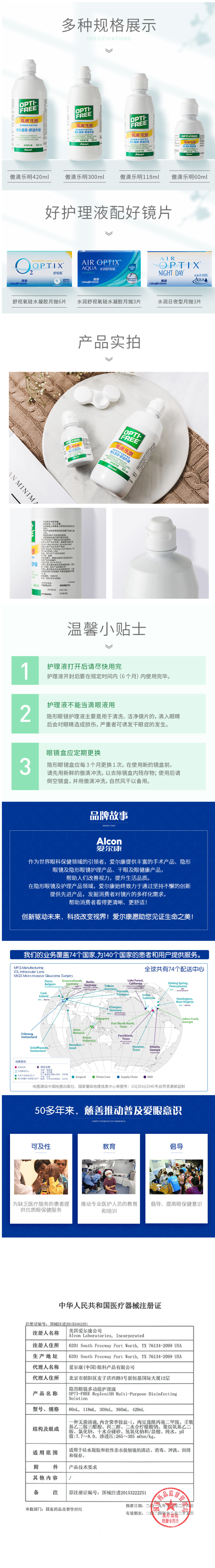爱尔康公司是全球最大的眼科药品与医疗器械专业公司,这款傲滴护理液,经过美国FDA批准,美国制造,属于高端产品。