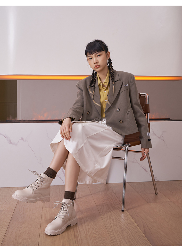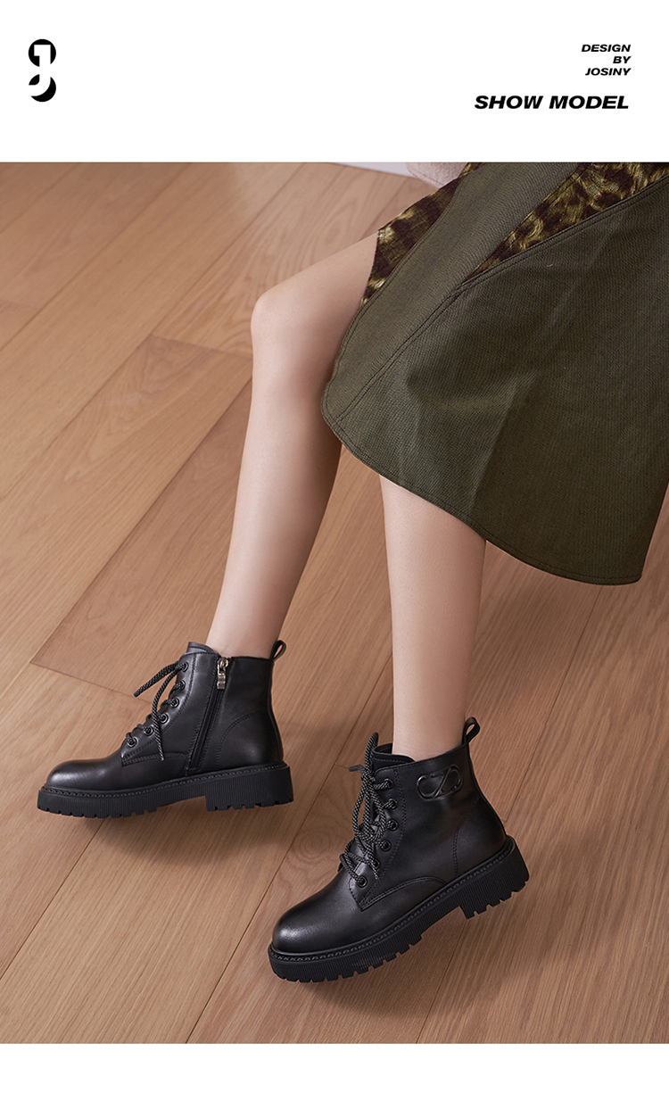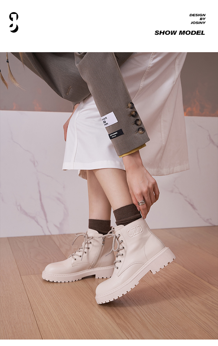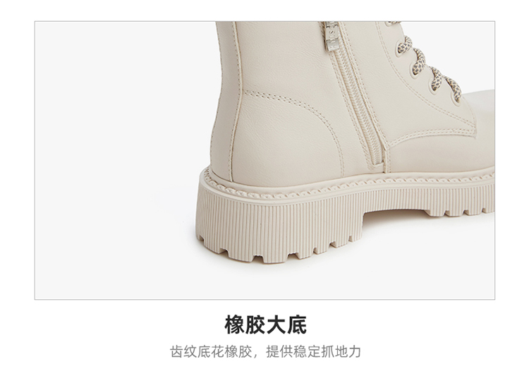 这款卓诗尼女加绒粗跟厚底中筒马丁靴,是2021年的冬季新款,经典马丁靴造型,中筒、圆鞋头、齿轮底。鞋面是合成皮革,鞋垫则是头层猪皮,脚感上会更柔软舒适。粗跟厚底,橡胶外底+齿轮底花,耐磨防滑抓地强。