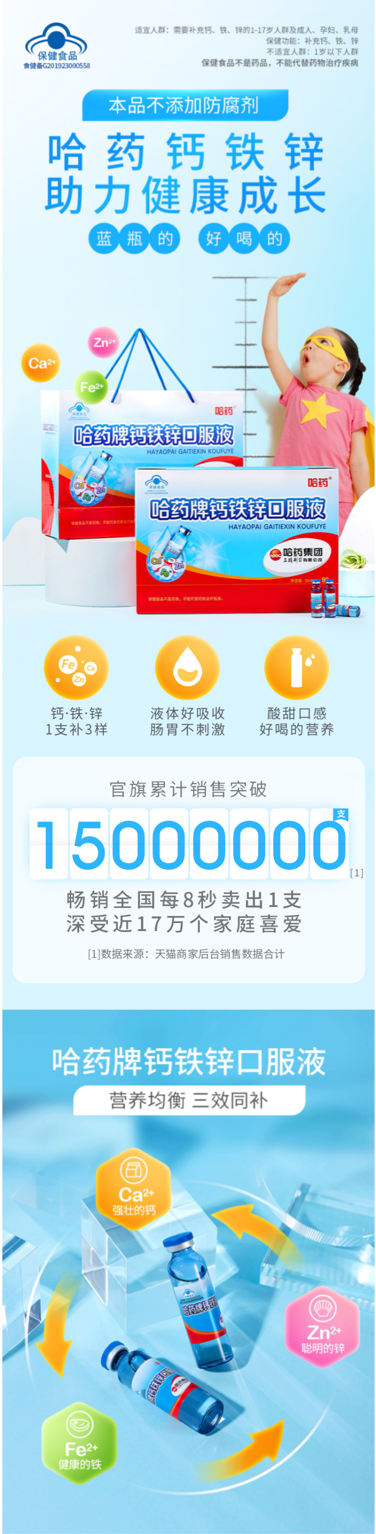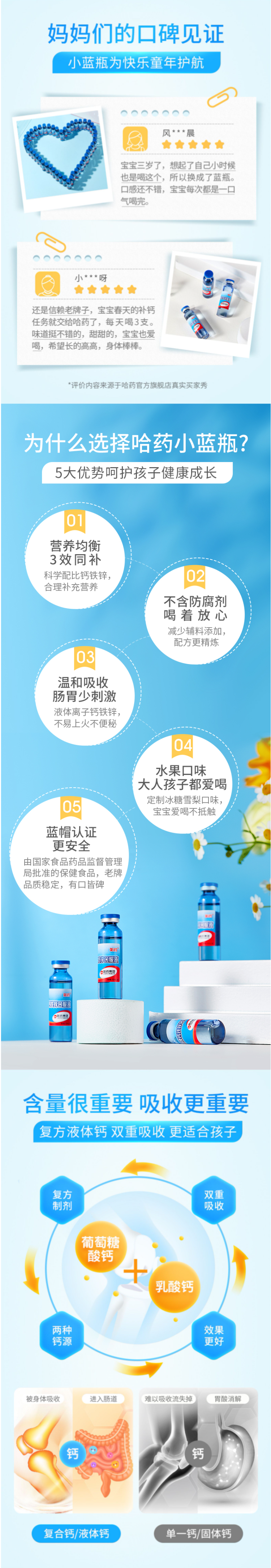 哈药知名品牌实力保障,多年口碑的钙锌同补保健品,还记得经典广告语“蓝瓶的,好喝的!”