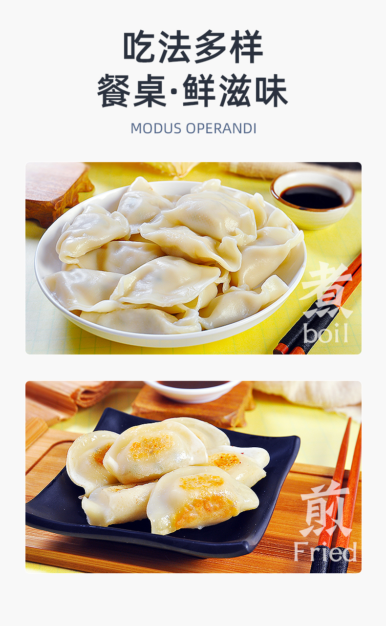 鲅鱼学名蓝点马鲛。古语云“山有鹧鸪獐,海有马鲛鲳”,鲅鱼肉质细密紧致,富含蛋白质、维生素等营养元素,营养丰富,被认为是最美味的海鱼之一。作为饺子馅料儿的鲅鱼肉质更鲜美,无需加其他多余的调料,和入少许姜葱、韭菜,香滑入口,细腻的口感让人回味无穷。