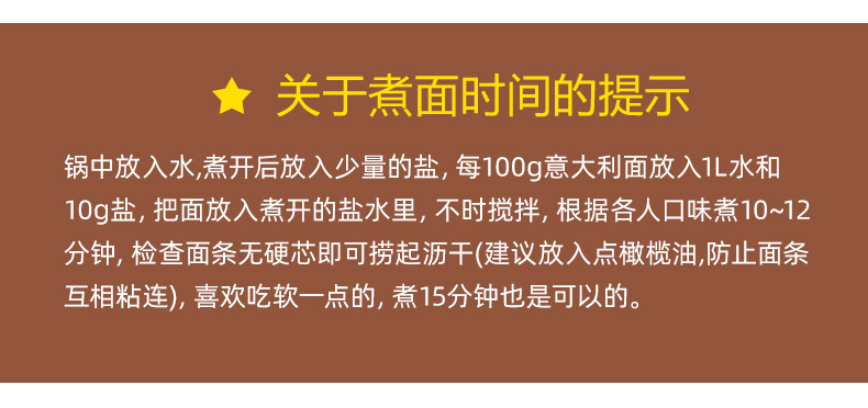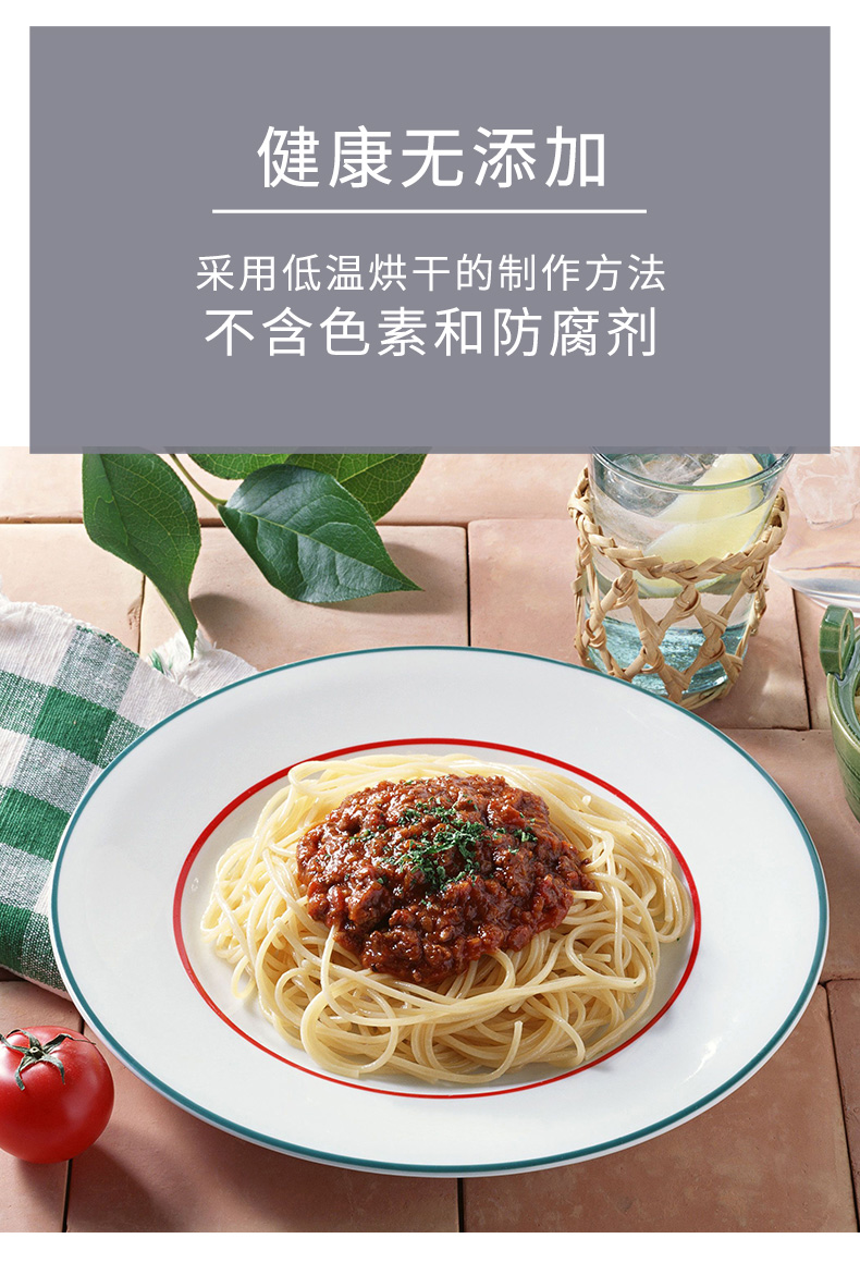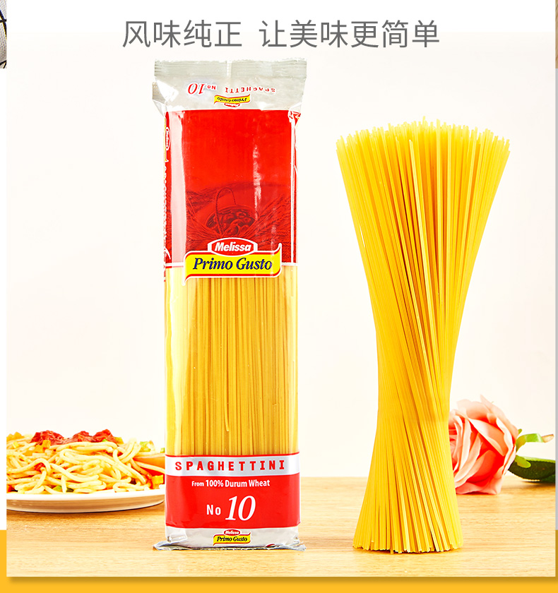 这款意面,希腊原装进口,以杜兰小麦为原料,这个品种属于硬质小麦,具有高密度、高蛋白质、高筋度等特点,做成的意大利面呈金黄色,耐煮、面质软弹,口感劲道爽滑,其中每100g含蛋白质12g、脂肪1.5g、不仅可以满足人们所需营养,还可以增加长时间的饱腹感;采用低温烘干健康无添加,适合所有人群食用。