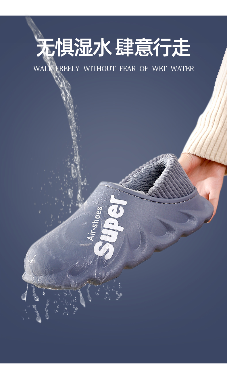 利达妮2021年新款居家厚底情侣防水棉拖鞋,皮料质感细腻,防尘防水,针织罗口,保暖不闷脚;一只鞋约160g~200g,轻盈不累脚;可晾晒设计,鞋舌可以翻出来进行晾晒;5CM鞋底,回弹保暖;TPR防滑鞋底,久穿耐磨安全舒服更安心。