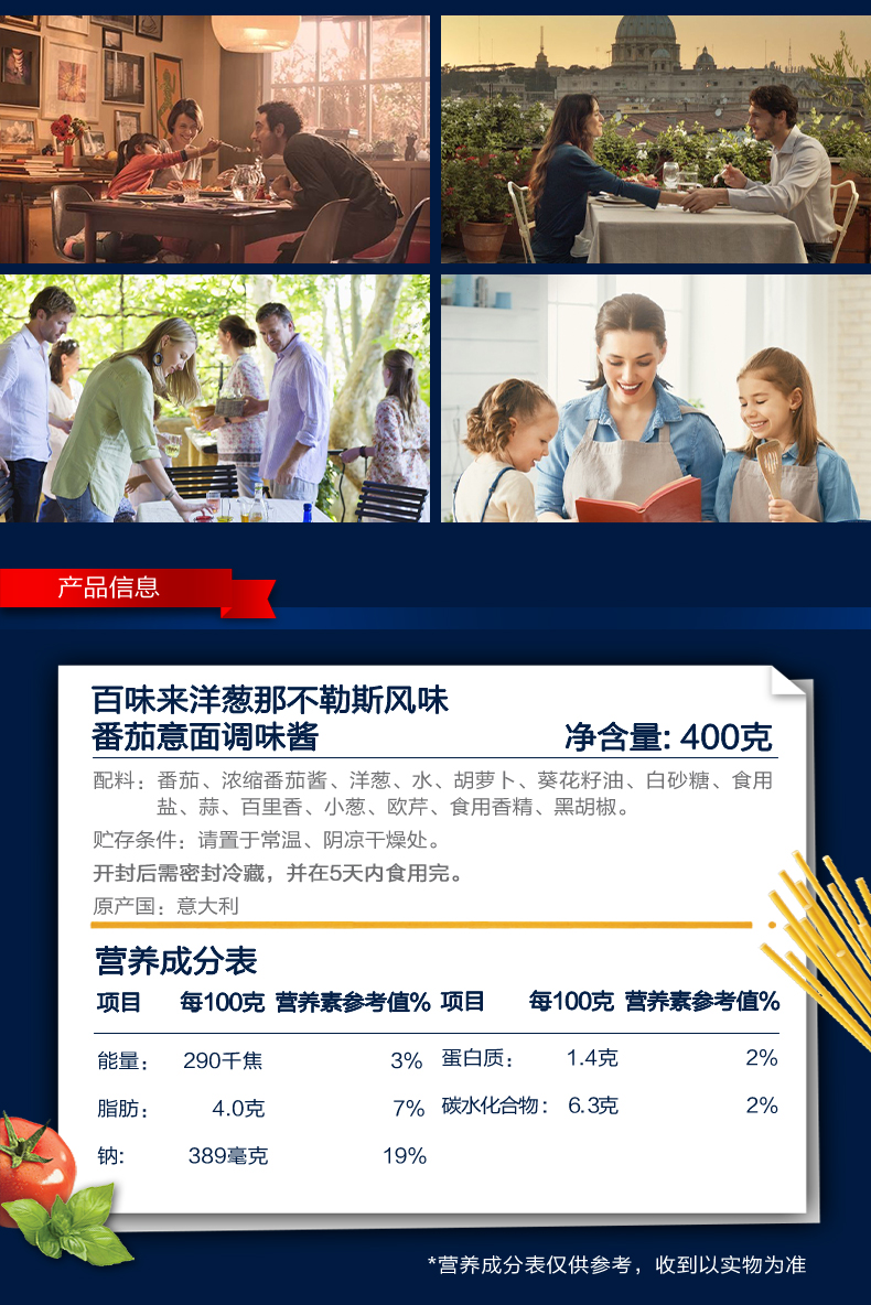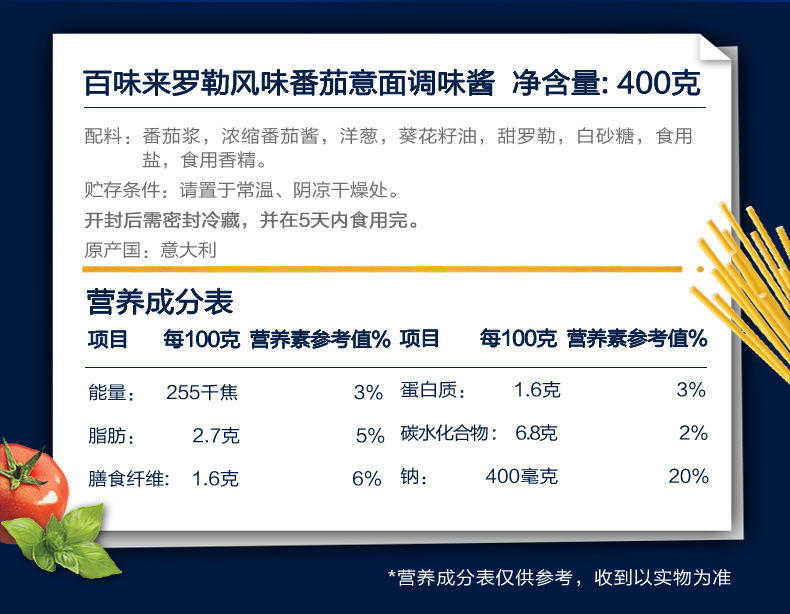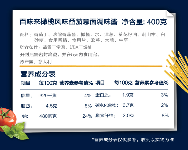 买1送1—2月到期,百味来罗勒风味番茄意面调味酱 400g