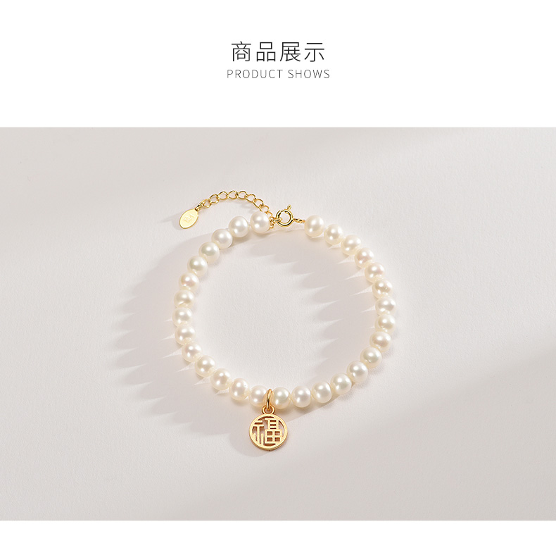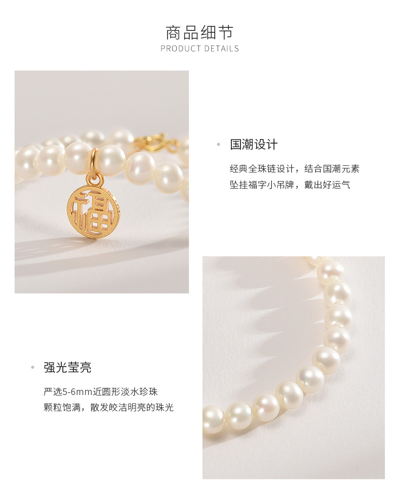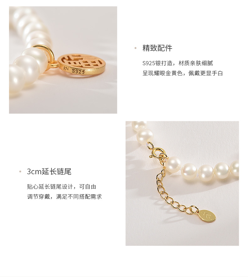 这款京润珍珠 福气 S925银近圆淡水珍珠手链 ,精选5-6mm近圆形淡水珍珠,强光微瑕高品质珍珠,颗粒饱满,珠光莹润亮泽,S925银亲肤材质,镜面抛光处理,光泽鲜亮质感细腻,弹力松紧绳圈设计,单手也能轻松穿戴,搭配圆福小吊牌,加持好运。