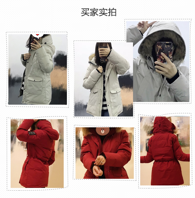 在款式和细节方面,直筒版型,腰身有弹性抽绳,羽绒服是连帽设计,帽檐一圈有用拉链连接的大貉子毛领;双头主拉链和钉扣组合的双门襟,有着更好的保暖效果,所有拉链都是YKK的,防风保暖袖口。