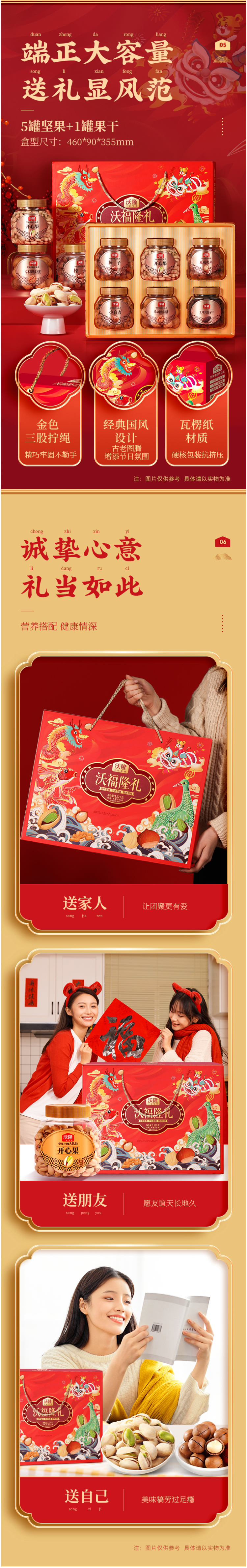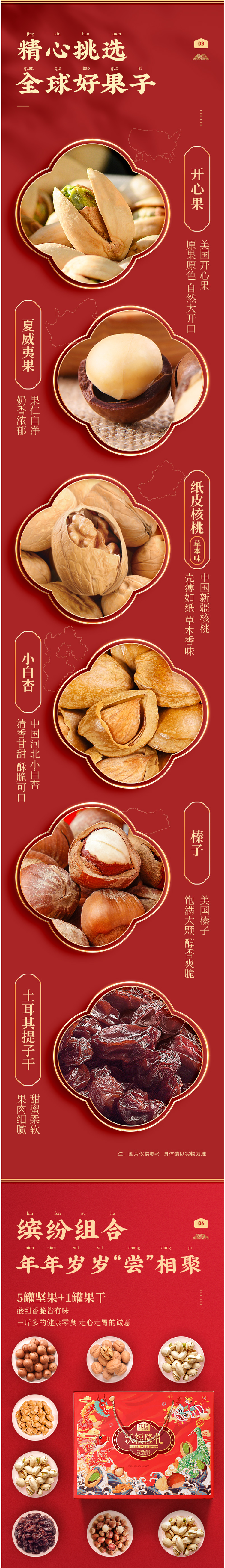 这款是沃隆的高端坚果礼盒,包含开心果 240g、夏威夷果 280g、草本味纸皮核桃 180g、榛子 240g、小白杏 260g、土耳其提子 320g,全都是比较高端的坚果和果干,没有像瓜子仁这种凑数款,适合送礼。
