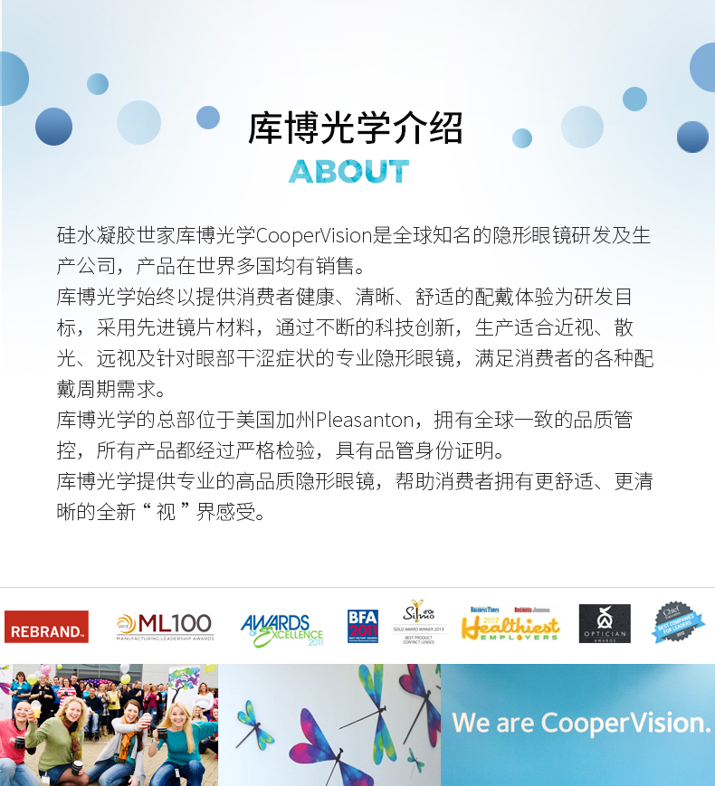 库博光学(Martin H.Smith)作为库博集团的一个业务分支,是全球领先的软性隐形眼镜制造商之一,致力于为隐形眼镜配戴者制作优质镜片,带来视力保健的清新感受。1958年库博集团的前身Martin H.Smith Co.公司成立,1961年,Martin H.Smith Co.并入Delaware成立Cooper Tinsley Laboratories,Inc;1979年纽约交易所上市,并且在1979年~1983年分别获得了FDA的多项批准;2005年,库博光学成为第三大全球隐形眼镜制造商;于2012年7月,正式更在中国销售。
