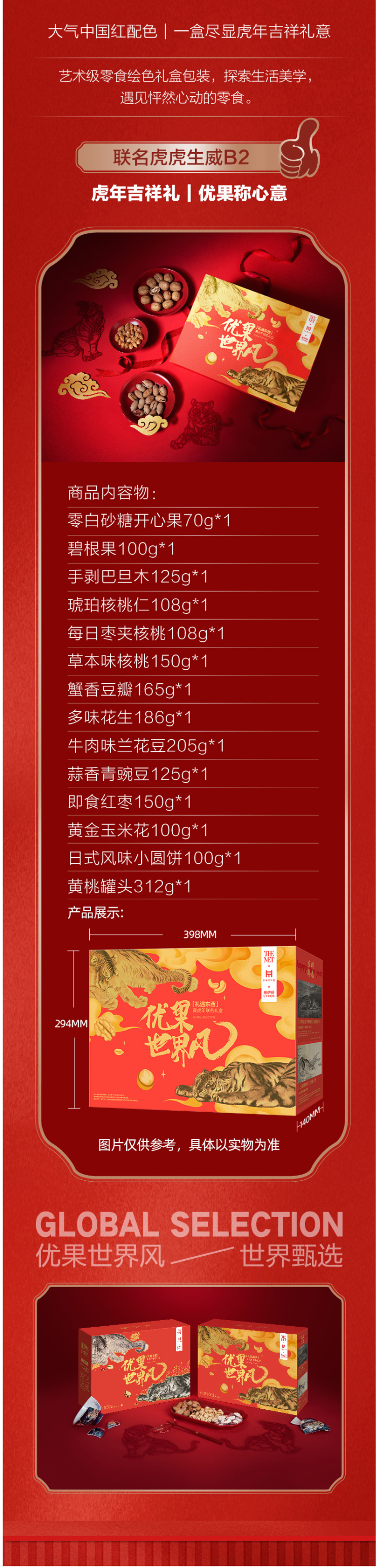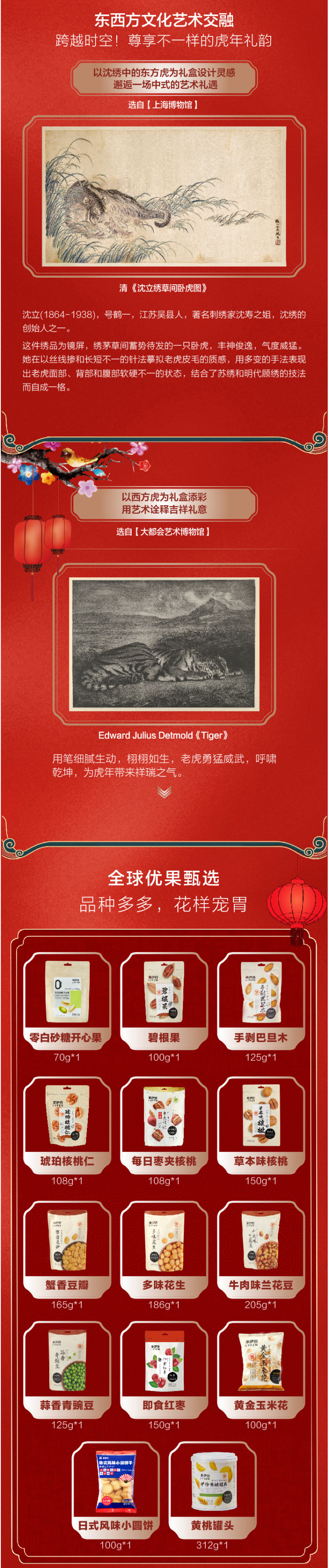 这款来伊份 博物馆联名 虎虎生威 混合干果年货礼盒,包含