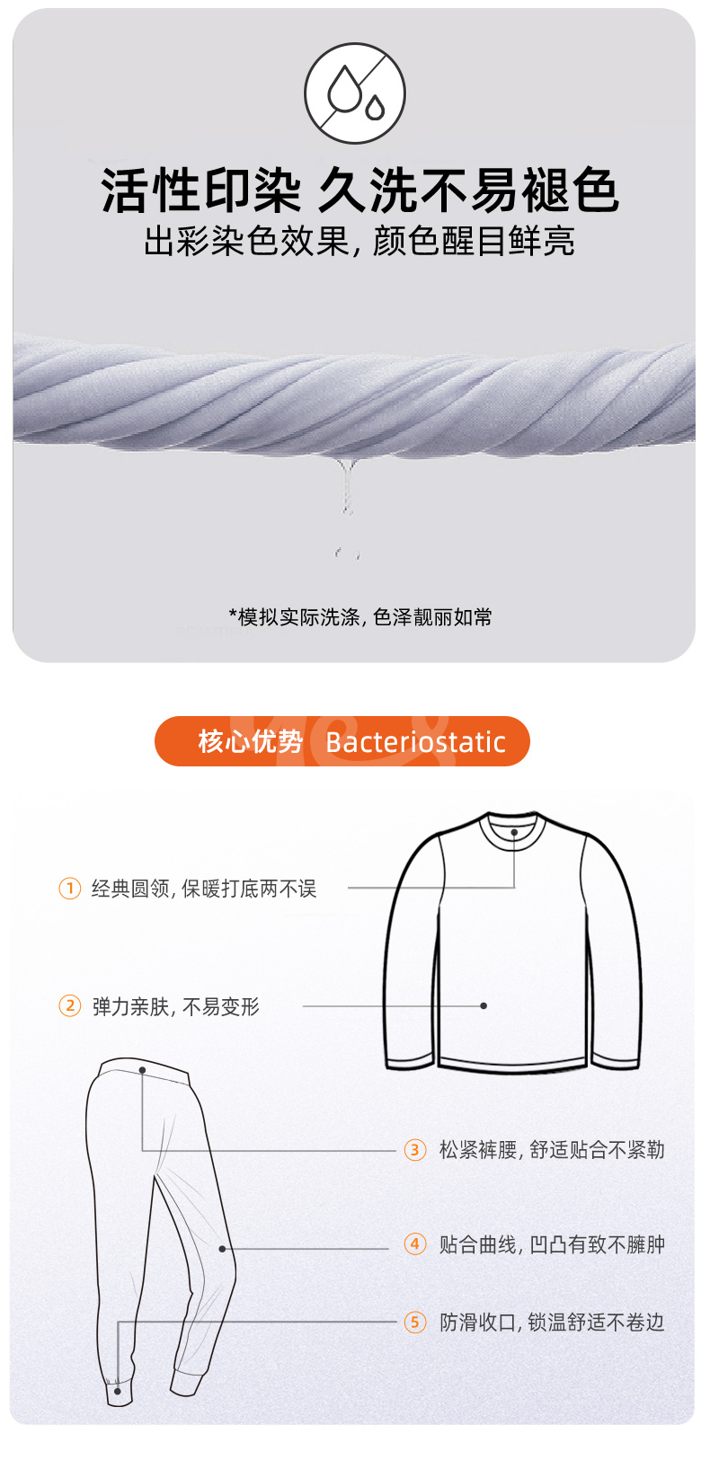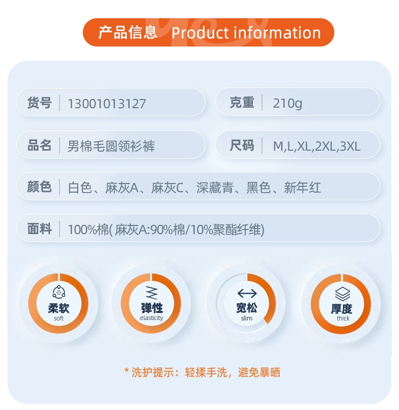 修身版型,上身保暖不臃肿。罗纹衣领、袖口和裤脚设计,水洗不变形,防止冷风灌入,提高保暖效果。整体走线工整均匀,耐磨耐穿,且不摩擦皮肤,提升穿着体验。