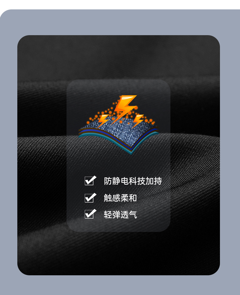 在款式上,标准版型,弹力松紧裤腰配抽绳,穿脱方便,两侧插袋有拉链,置物更安全,裤脚走线平整流畅。还特别经过抗静电处理,避免秋冬季的静电响和吸附灰尘。