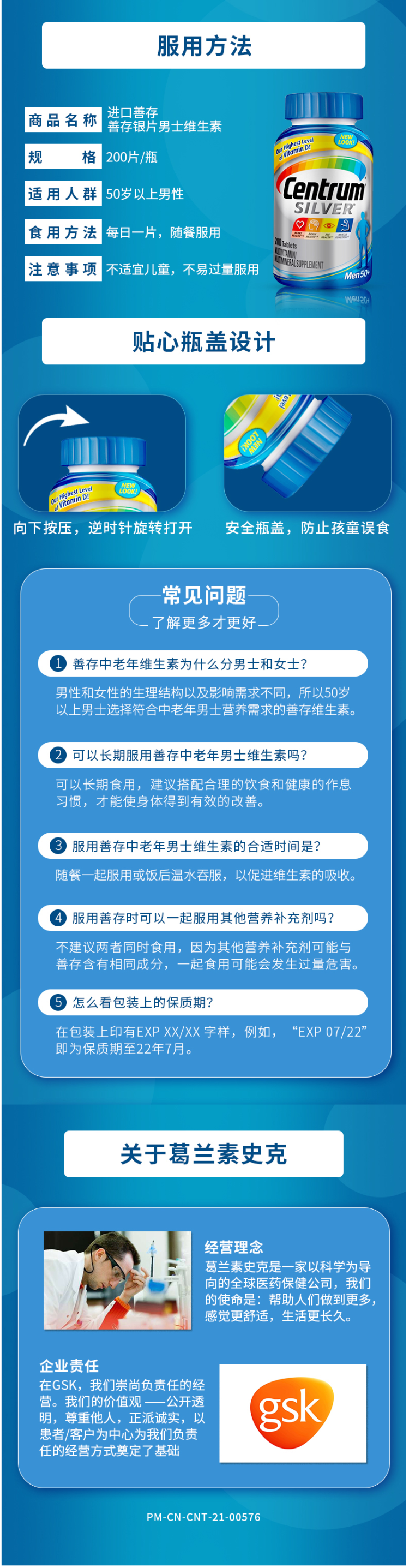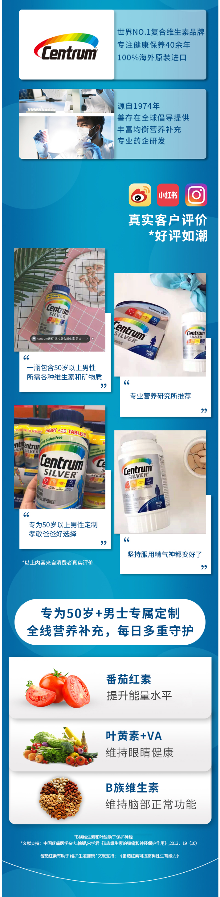 这款善存银片专为50岁以上的中老年男士设计,复合27种营养,5大维生素、8种B族、12种矿物质维生素,特别添加了番茄红素和叶黄素配比,可补充日常所需营养,提高免疫力,每日1片,随餐服用。