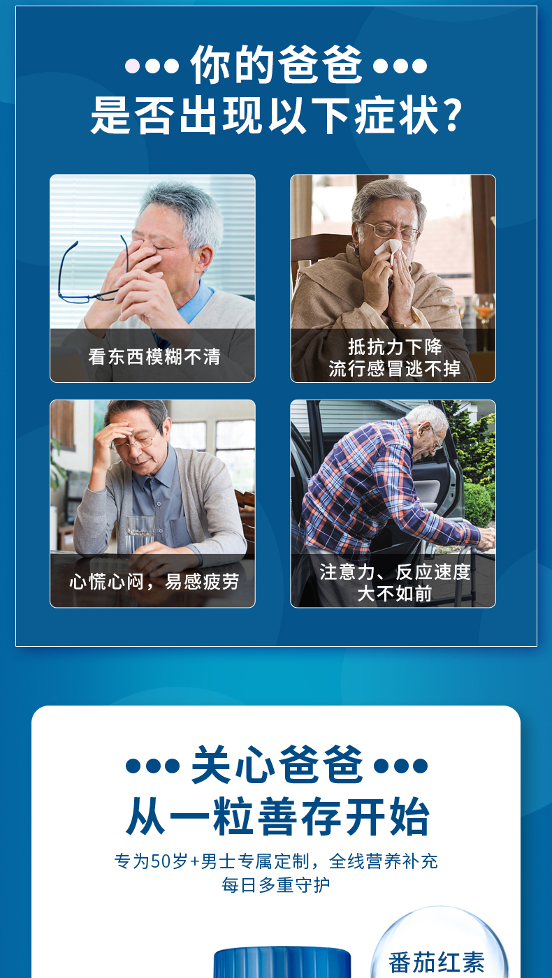 功效:维护心脑血管健康,增强骨骼肌肉能力、促进代谢,提高免疫力,其中番茄红素可以补充心脏所需营养,保护心血管健康,叶黄素+维生素A 可帮助维持正常视力保护眼睛健康。