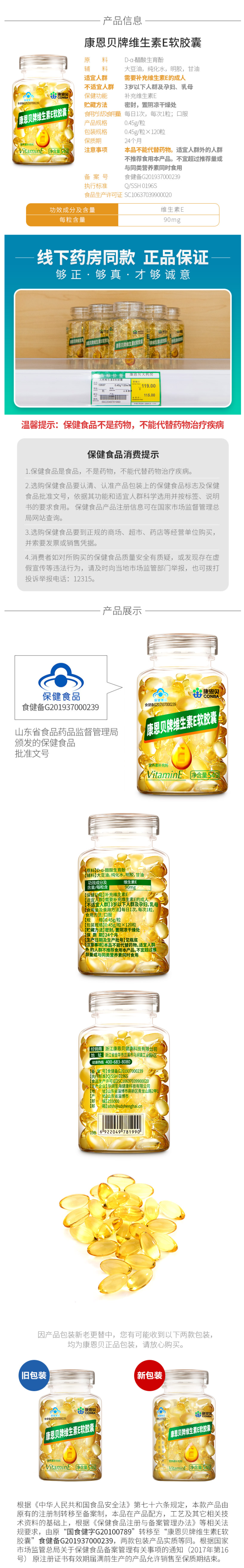 这款康恩贝 天然维生素E胶囊,从优质非转因基因大豆油中提取维生素E成分,晶莹剔透,每粒含维生素E 90mg,具有祛斑、祛痘印、延缓衰老的功效,成人每日1粒。