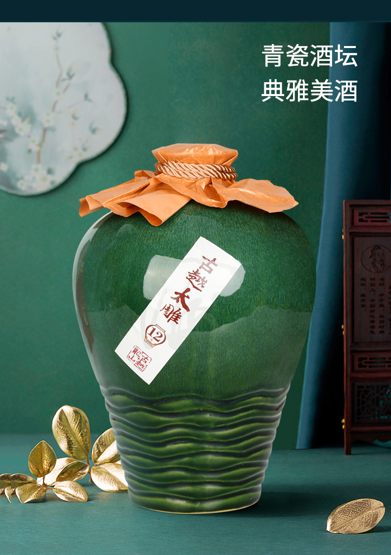 这款古越龙山十二年太雕,容量为2.5L,采用鉴湖水、糯米、小麦、酒曲,经过传统工艺酿造,含有多种氨基酸和微量元素,健康美味。
