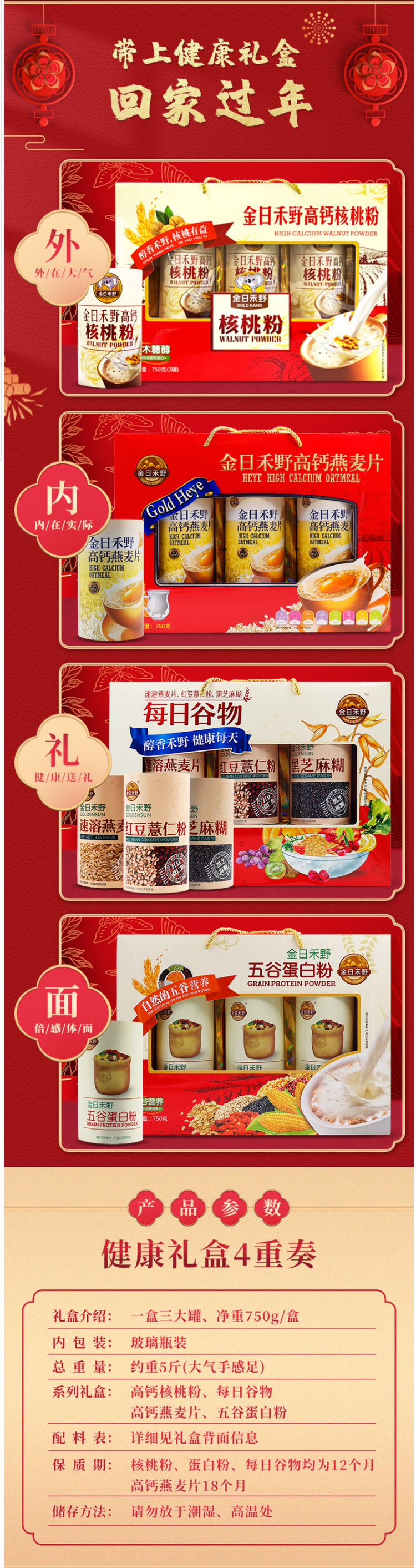 淘宝「金日禾野品牌总店」99元,可领50元优惠券,实付49元到手,有高钙核桃粉礼盒/无蔗糖,高钙燕麦片礼盒/甜味、五谷蛋粉礼盒/甜味可选。